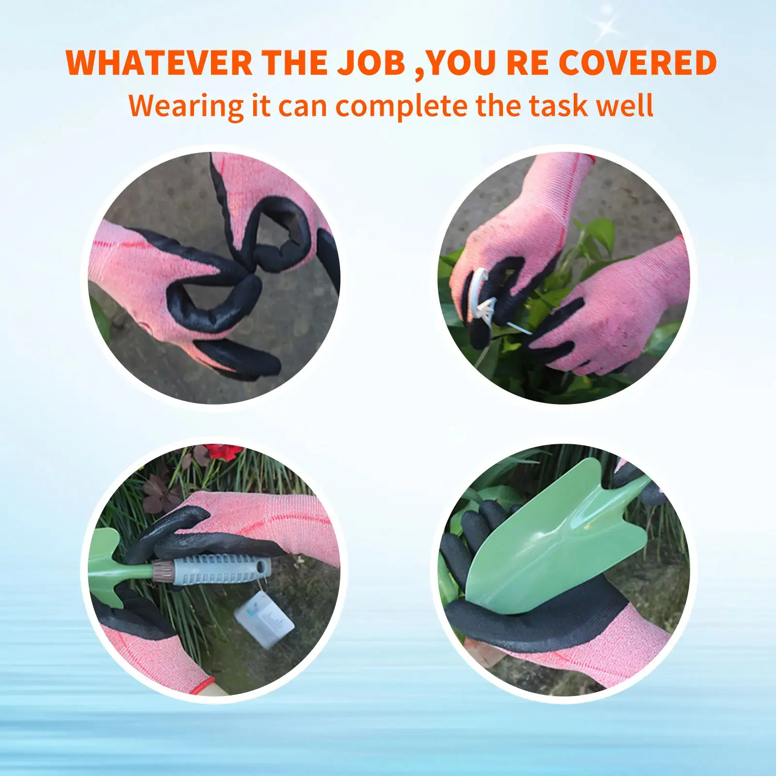 | 1 Pair Garden Gloves for Women and Men, Breathable for Outdoor, Gardening, Working, Fishing, Weeding, Digging, Seeding, Planting Feature: Comfortable and safe material, so you can use it with confidence. Soft Comfortable feeling, ventilation and circulation, protect health. It can be used for daily work to prevent hand injuries and bring a safe environment to your work. More wear resistant, more puncture resistant, durable, and can prevent nail breakage and finger tip injury. Perfect for all your gardening tasks while weeding, planting, digging, seeding, picking fruits and more. Also great for landscaping, handling, automotive, logistic, warehousing, driving, and DIY. Specification: Packing: OPP Bag Color: Pink Size: One Size Material: Butyronitrile Gender: Women Men Season: Four Seasons Place: Daily Garden Planting Note: Due to the different monitor and light effect, the actual color of the item might be slightly different from the color showed on the pictures. Thank you! Please allow 1-3mm measuring deviation due to manual measurement. 1 Pair X Garden Gloves