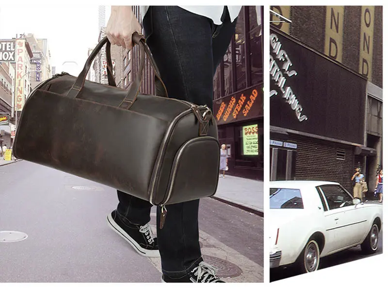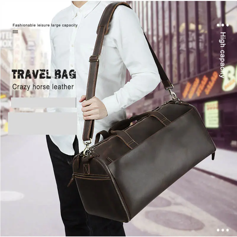 Big Capacity Leather Man Travel Bags Crazy Horse Leather Luggage Weekend Travel Duffel Large Business Man Handbag Shoulder BagUSD 76.59-112.32/piece