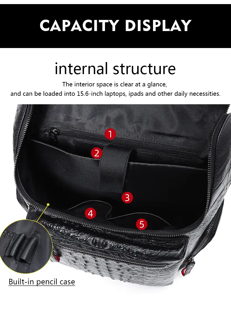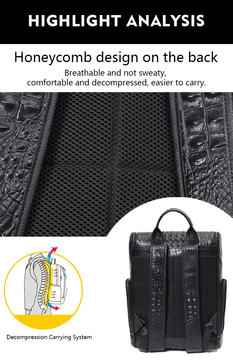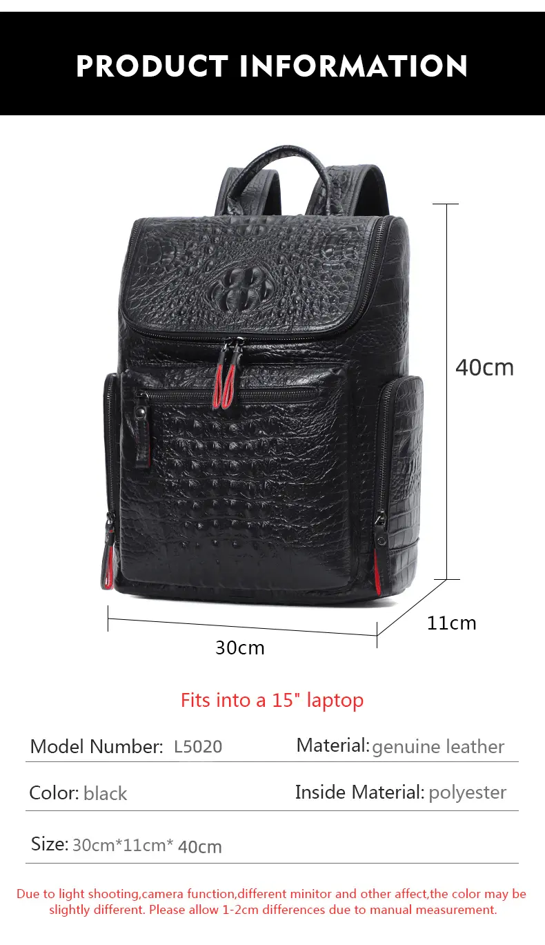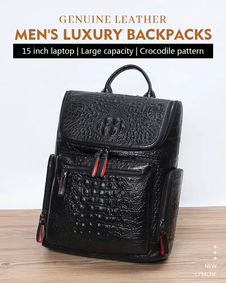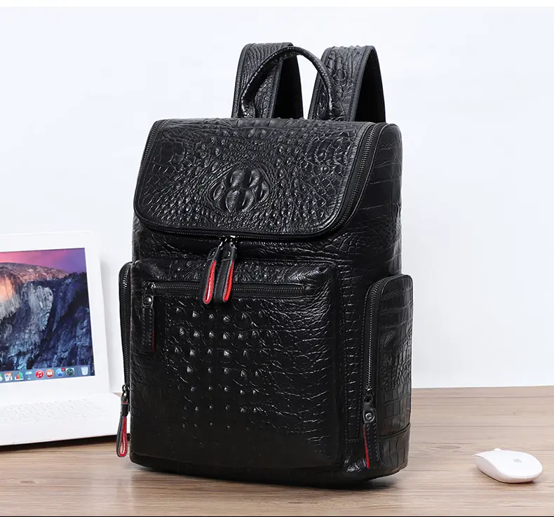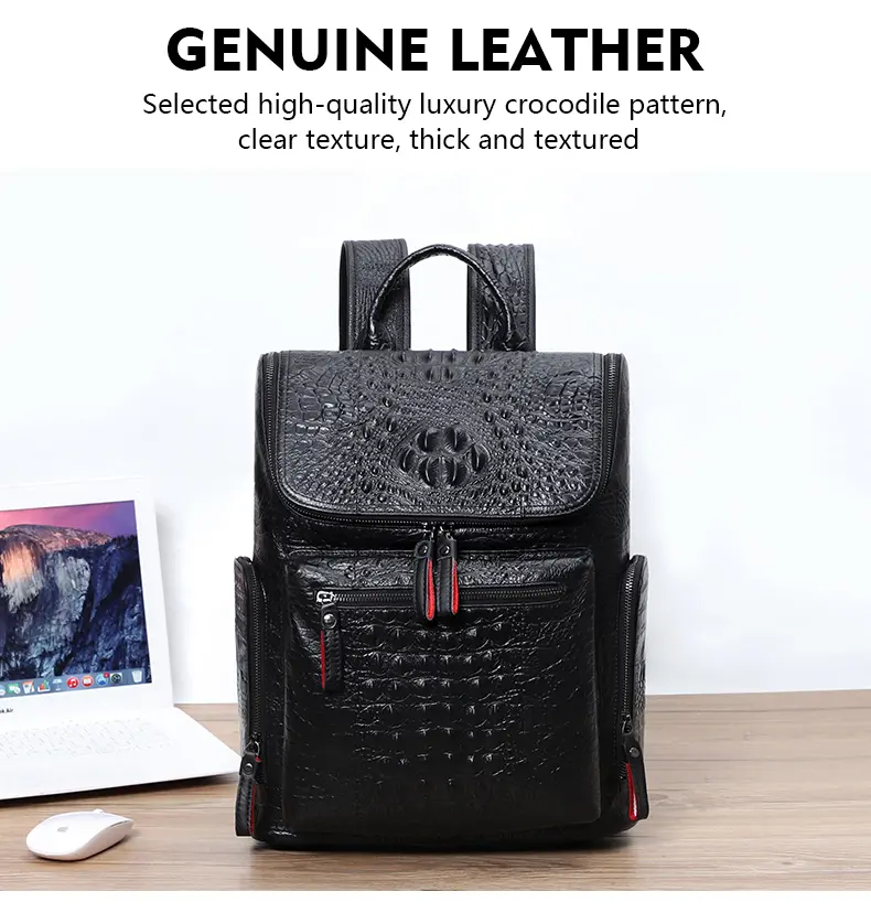 Crocodile Genuine Leather 15.6 inch Laptop Backpack Men Travel Bags Bagpack Waterproof Big Backpack For Teenager Schoolbag