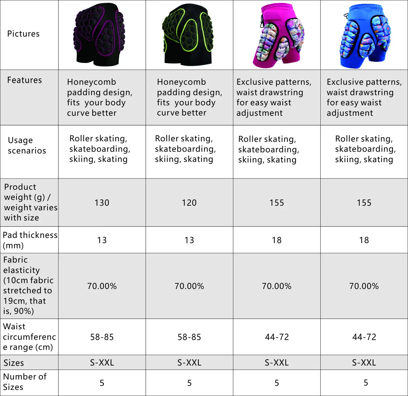 Padded shorts are crucial for outdoor and all action sports activities such as snowboarding, skiing, rollerblading, skateboarding, they can help protect hip, sacrum, tailbone, coccyx, gluteus, and so on