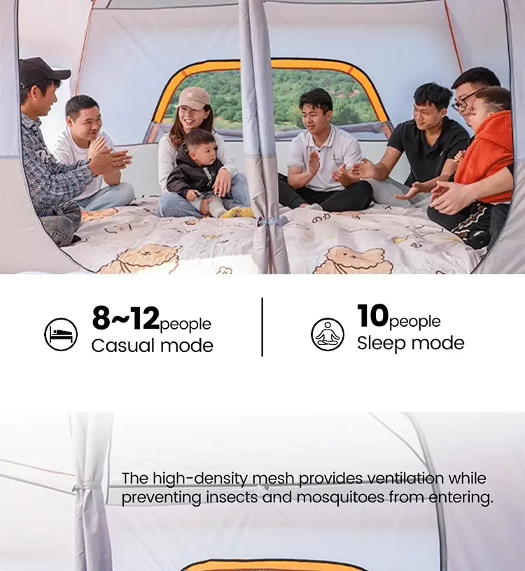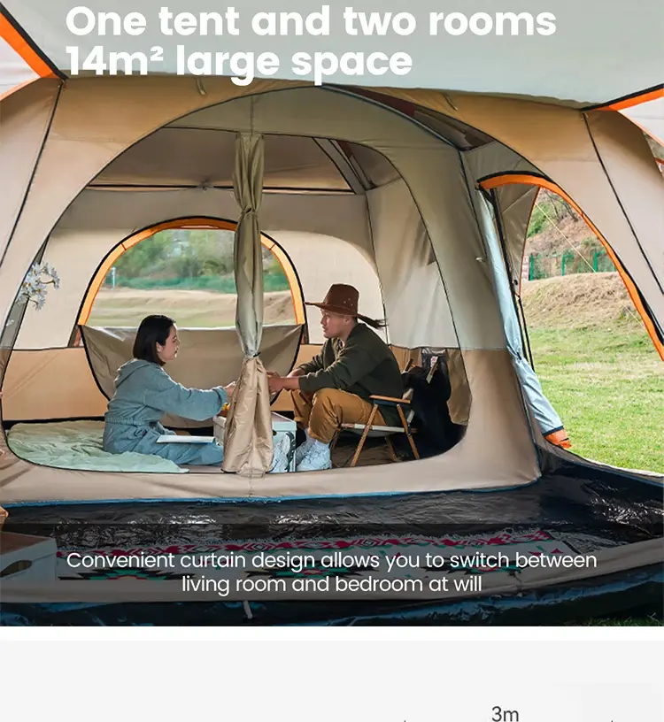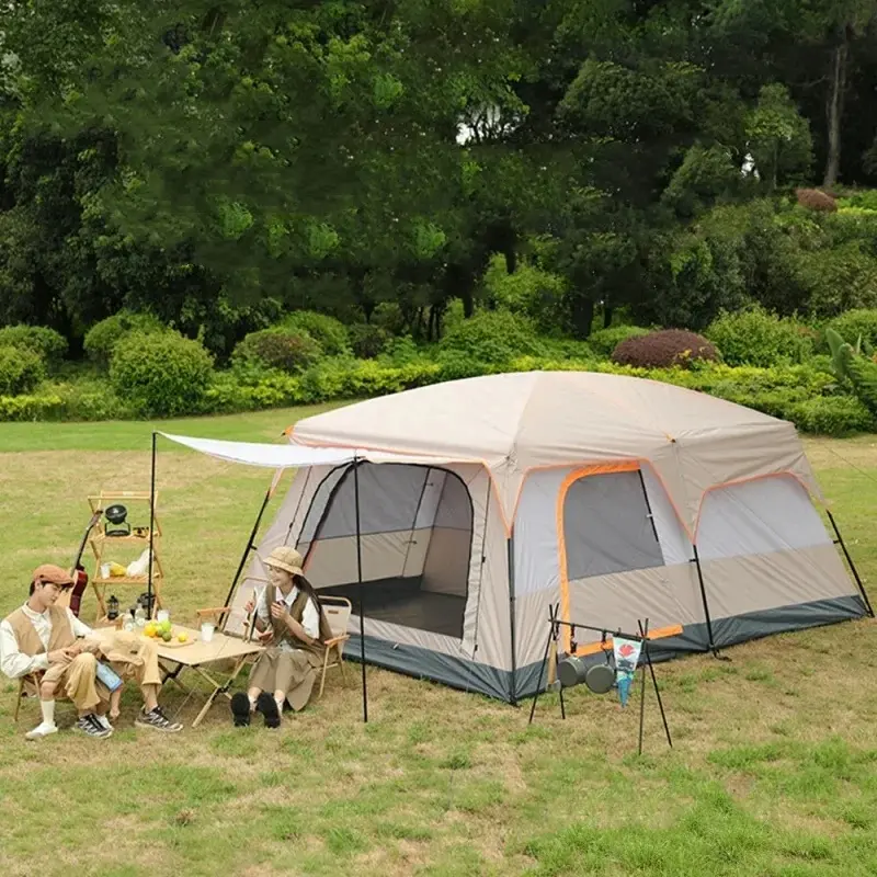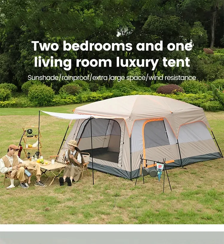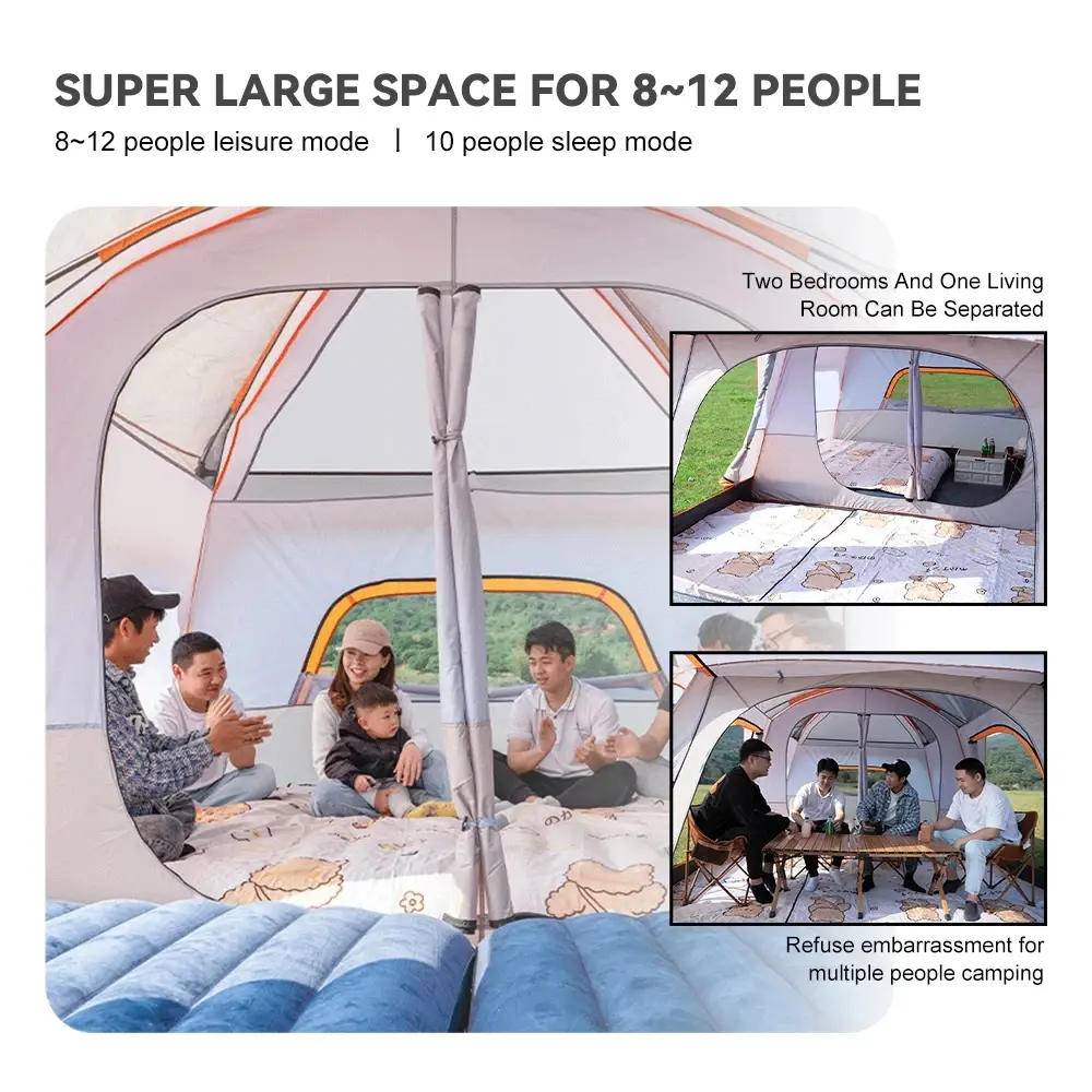 4-12 People Outdoor Camping Luxury Tents Large Family Tent With Rooms Waterproof Two-Bedroom And One-living Room Design