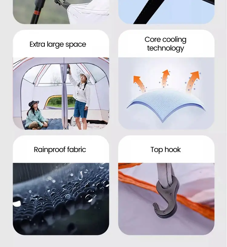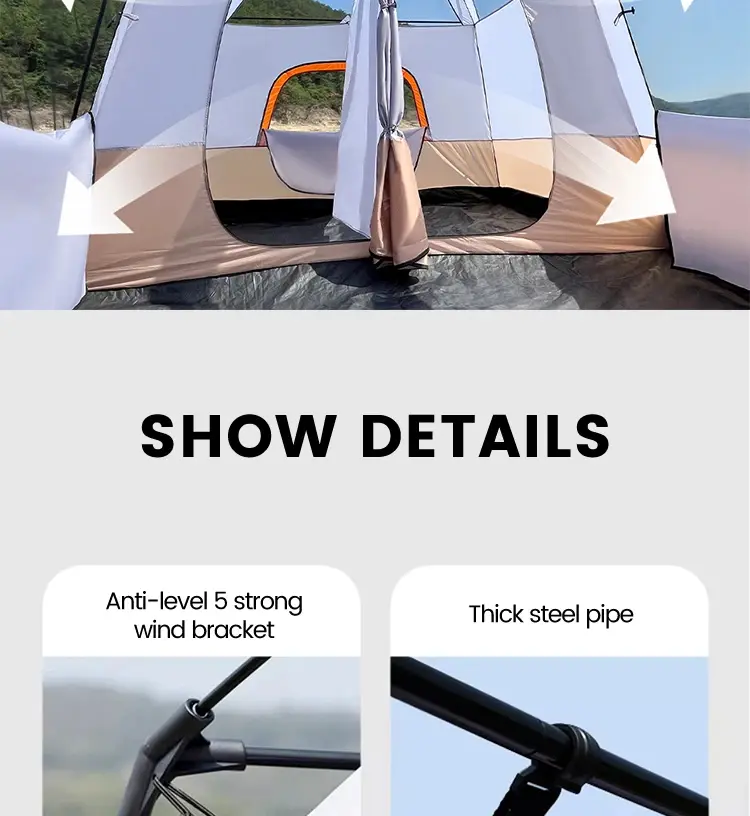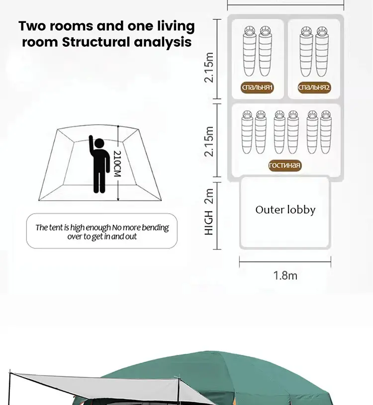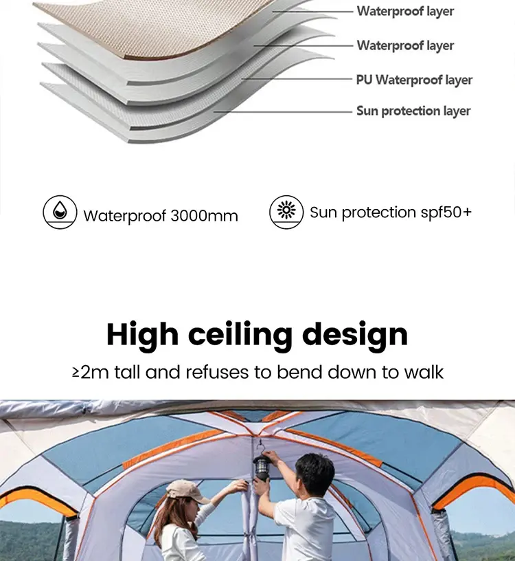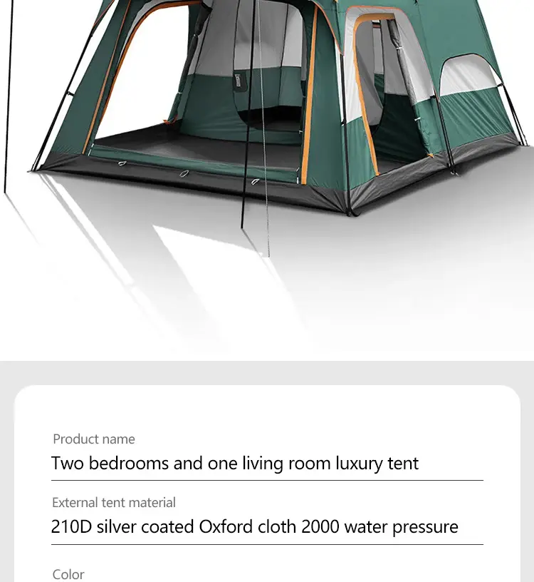 4-12 People Outdoor Camping Luxury Tents Large Family Tent With Rooms Waterproof Two-Bedroom And One-living Room Design