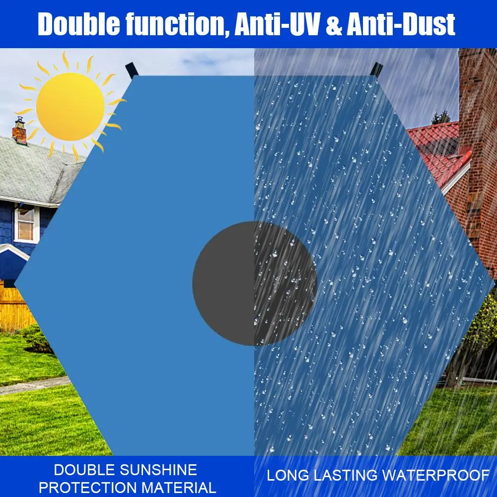 DOUBLE SUNSHINE PROTECTION MATERIAL:Designed with UV resistant coating for optimal UV and tear protection. You can jump on the trampoline as much as you want on hot summer days. This sun cover also keeps your leisure trampoline dry and clean when not in use. Protect your trampoline from all seasonal conditions with this trampoline sun cover.