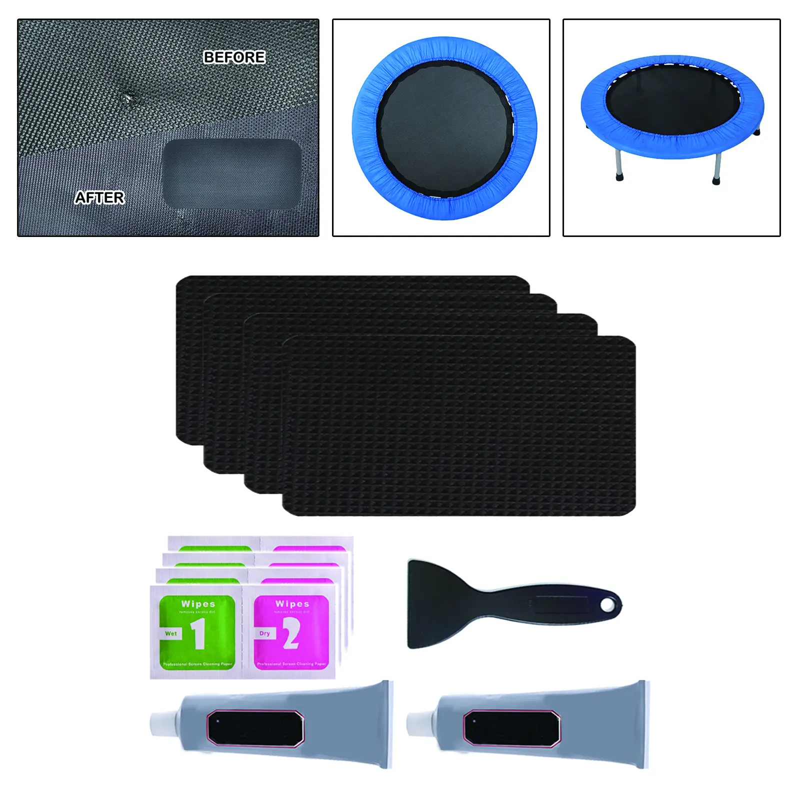 【Trampoline Repair Kit】: The trampoline repair kit is the perfect solution to fixing tears and holes in your trampoline mat.