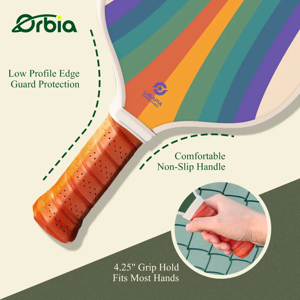 Material: Glass Fiber Weight: 7.5-8 oz Age Group: Adult Handle: 12cm Core Material: Nomex, PP core, Aluminum Product Name: Pickleball Paddle Length: 40cm (15.8'') **Optimized Performance for Pickleball Enthusiasts** The Orbia Sports Pro Pickleball Paddle is a top-tier choice for pickleball players seeking a balance of power and control. Designed with a USAPA compliant spin surface, this paddle is engineered to enhance your game with its unique guitar-shaped design. The glass fiber face material ensures durability, while the lightweight construction, ranging from 7.5 to 8 oz, allows for swift maneuverability and reduced fatigue during extended play. **Designed for the Competitive Edge** The Orbia Sports Pro Pickleball Paddle's handle is crafted to provide a comfortable grip, measuring 12cm in length, ensuring a secure hold for players of all skill levels. The core material, a blend of Nomex, PP core, and aluminum, offers a robust and responsive playing experience. The paddle's length of 40cm (15.8'') is standard for pickleball, making it an ideal choice for both casual and competitive play. **Tailored for the Adult Pickleball Player** This pickleball paddle is specifically designed for adult players, offering a combination of power and precision. Its sleek design and high-quality materials make it a reliable choice for both recreational and competitive play. Whether you're honing your skills on the court or participating in a tournament, the Orbia Sports Pro Pickleball Paddle is engineered to deliver consistent performance and enhance your overall pickleball experience.