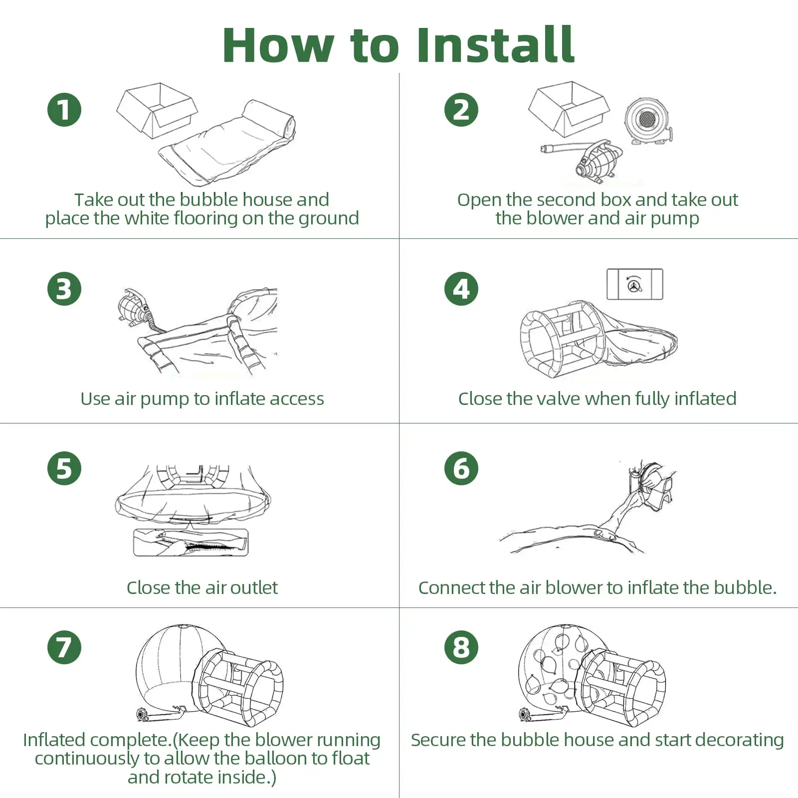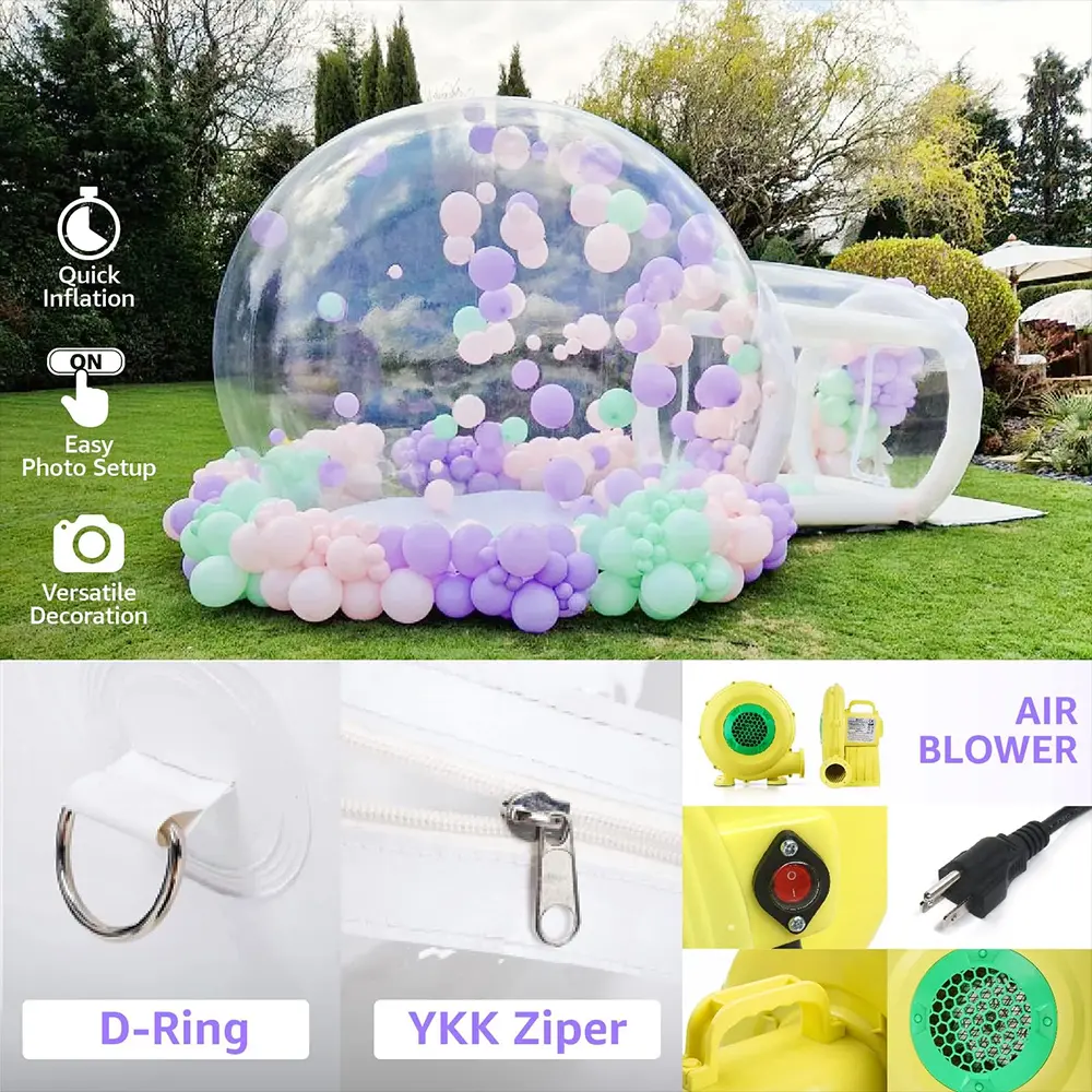 🎈 [ COMMERCIAL GRADE ] Our inflatable bubble house is commercial grade, designed to sustain the wear and tear of events, and manufactured with the highest standards. Very suitable for indoor party or outdoor activities .