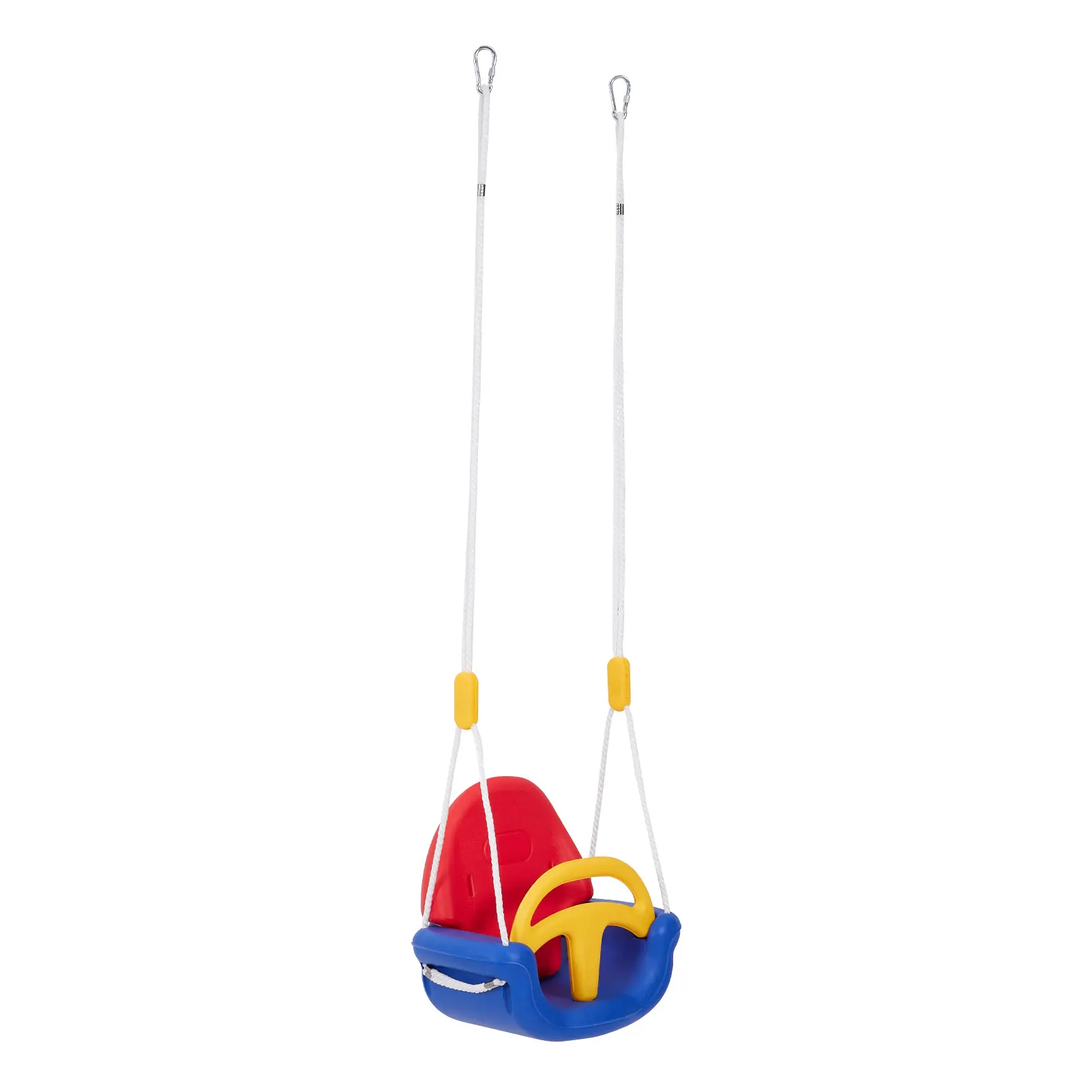 Create lasting memories with your kids on sunny days by swinging on our versatile toddler swing! Designed for safety and comfort, this swing features strong nylon ropes and a comfortable seat that is equipped with a removable T-bar and backrest, offering flexibility as your child grows. Enjoy worry-free playtime knowing your little one is secure. Easy to assemble and suitable for indoor or outdoor use, this swing encourages active play and joyful moments.