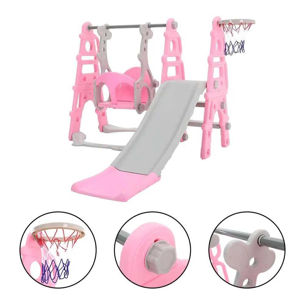 KIDkid Toddler Swing and Slide Set with Basketball Hoop Garden Climbing Frame, Outdoor Indoor Large Slide Swing , Pink&Blue