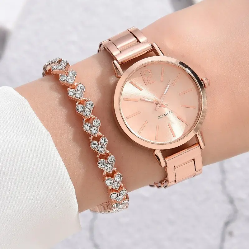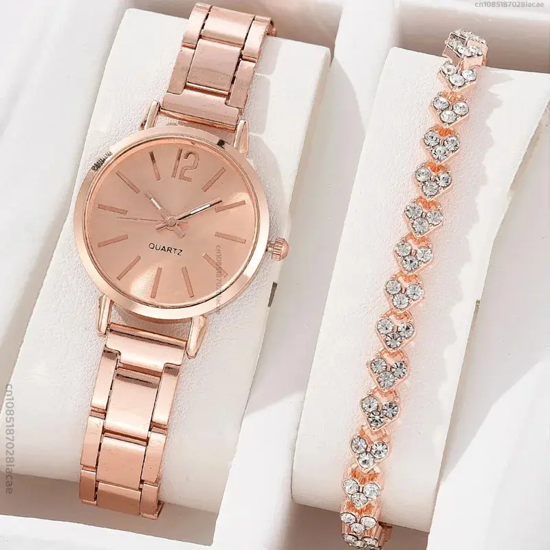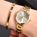 Ladies Fashion Simple Digital Alloy with Quartz Watch Bracelet 2pcs Set Luxury Women Simple Dial Ladies Watches Reloj Mujer