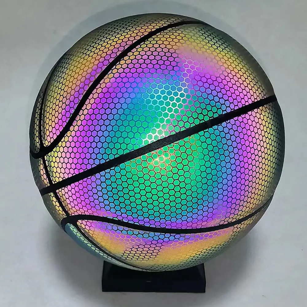 Luminous Basketball Ball Holographic Reflective Lighted Flash Ball PU Wear-Resistant Glowing Basketball Night Sports Game