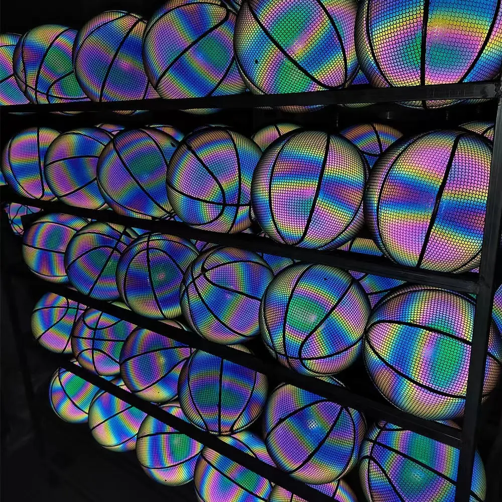 Luminous Basketball Ball Holographic Reflective Lighted Flash Ball PU Wear-Resistant Glowing Basketball Night Sports Game