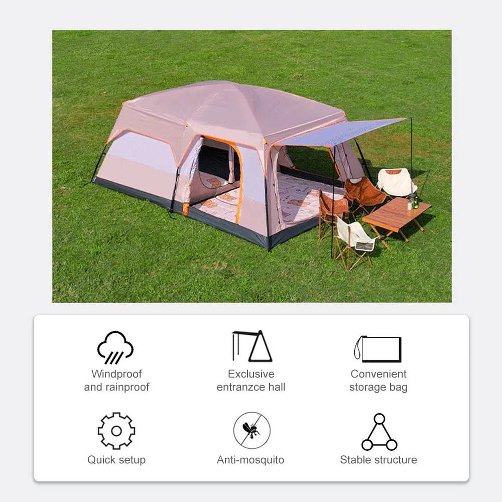 Luxury Tents For Camping Large Family Tent With Rooms 4-12 People Waterproof Two-Bedroom And One-living Room Design