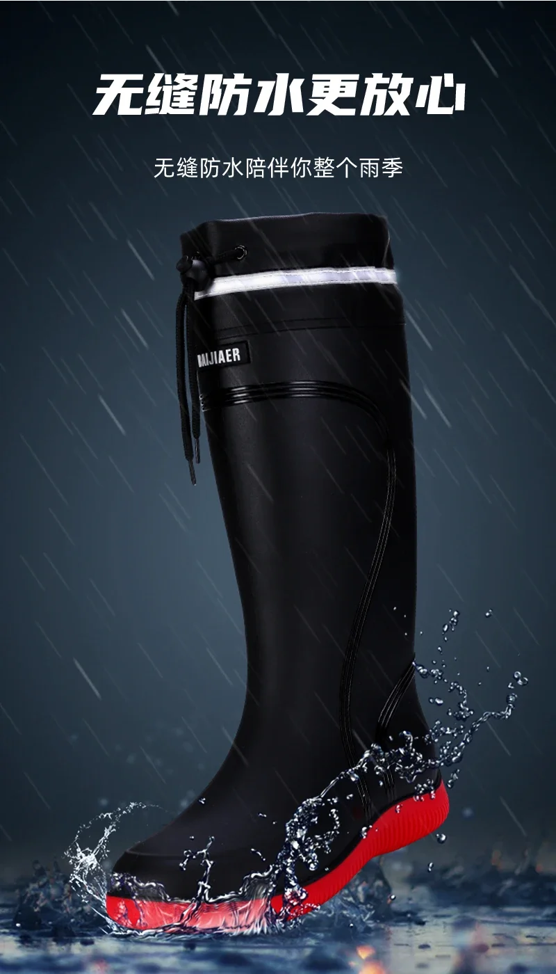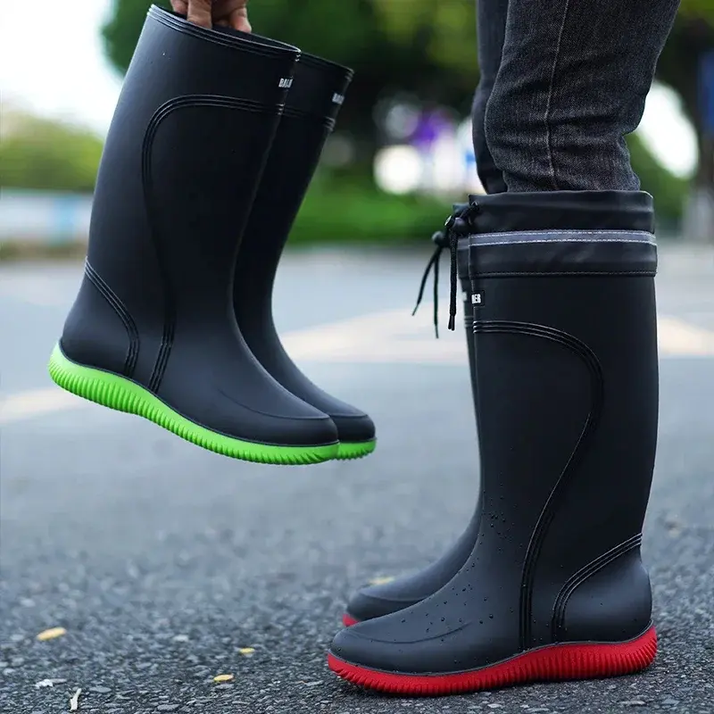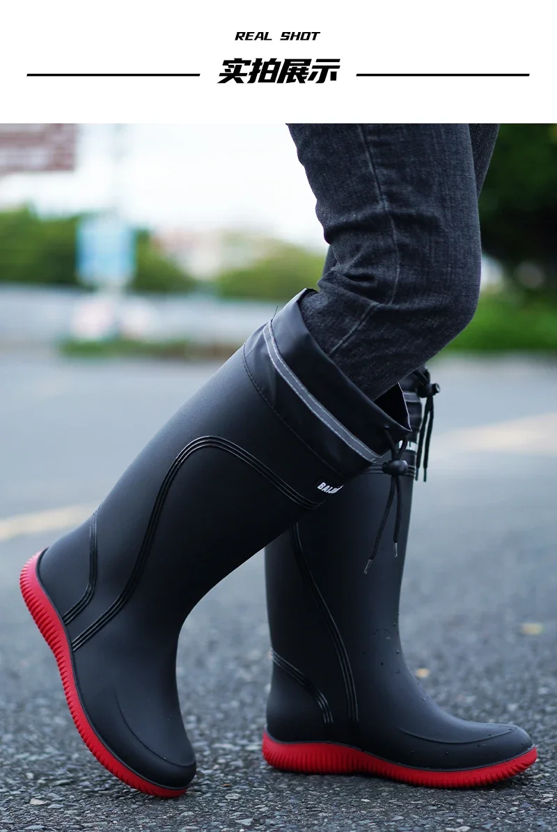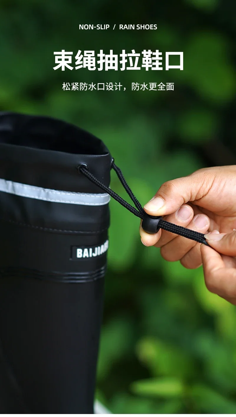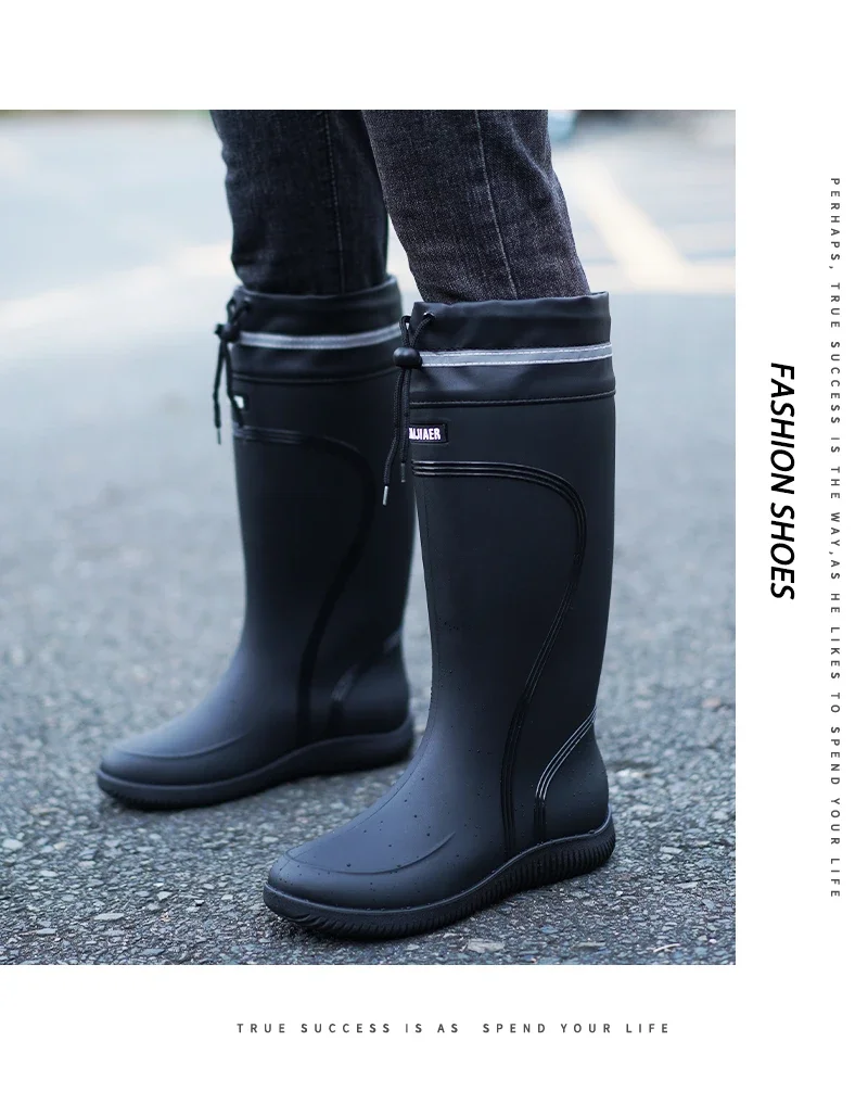 Men’s Women’s High-End Rain Boots Closed Rainproof and Waterproof Short and Mid.Calf Length Non-Slip Drawstring Rubber Boots
