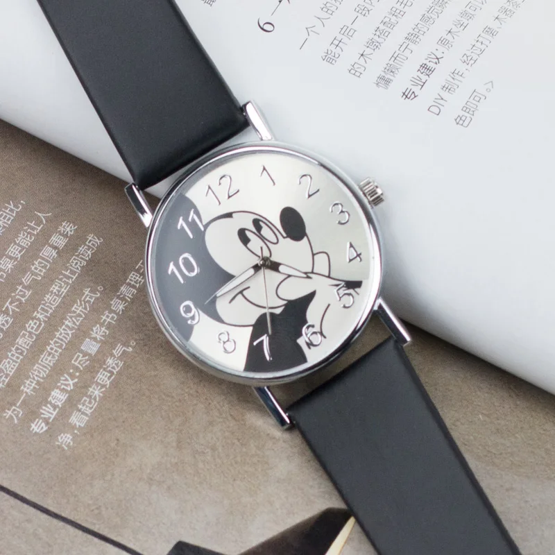 Disney Mickey Women Watches for Girls Leather Strap Ladies Quartz Clock