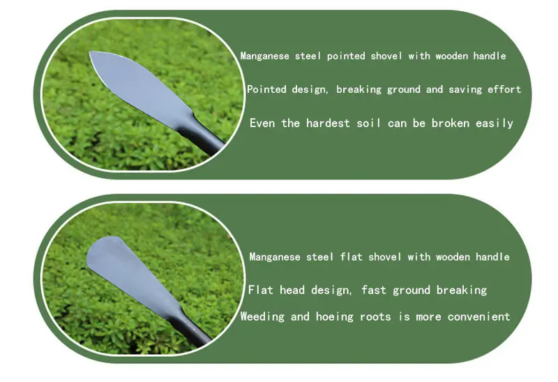 Specifications: 65 manganese steel wooden handle flat shovel, 65 manganese steel wooden handle pointed shovel