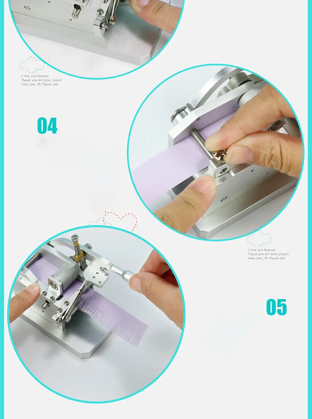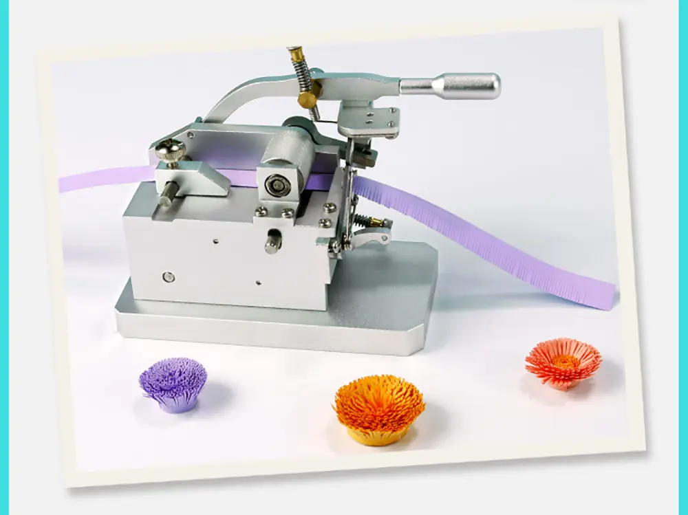 This is a quilted tassel machine with powerful functions such as safety, durability, adjustment, and smooth cutting! Advanced design, all-metal structure, fine workmanship, small and exquisite appearance, using scissors-type cutter, can reduce the wear between the blades, greatly extend the service life of the blades and the machine. Using patented paper feeding lag technology, the cut out tassels are smooth, not warped, and easy to make!