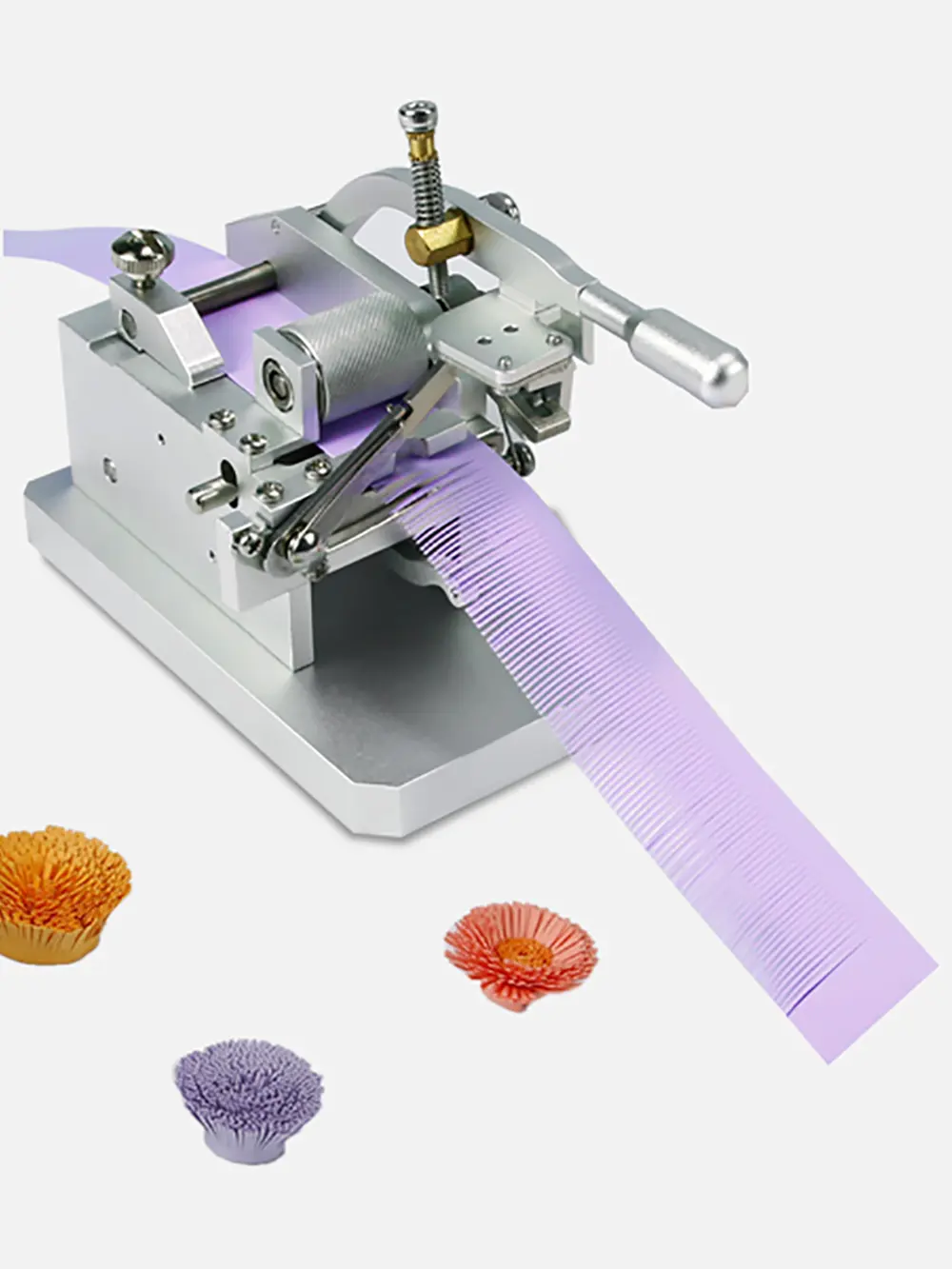 This is a quilted tassel machine with powerful functions such as safety, durability, adjustment, and smooth cutting! Advanced design, all-metal structure, fine workmanship, small and exquisite appearance, using scissors-type cutter, can reduce the wear between the blades, greatly extend the service life of the blades and the machine. Using patented paper feeding lag technology, the cut out tassels are smooth, not warped, and easy to make!