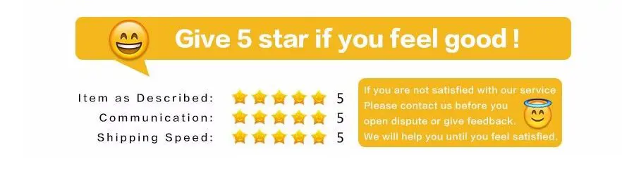 1. Please leave 5 star feedback if you’re satisfied with our products and service, we will appreciate it (Item as Described 5 stars, Communication 5 stars, Shipping time 5-stars).