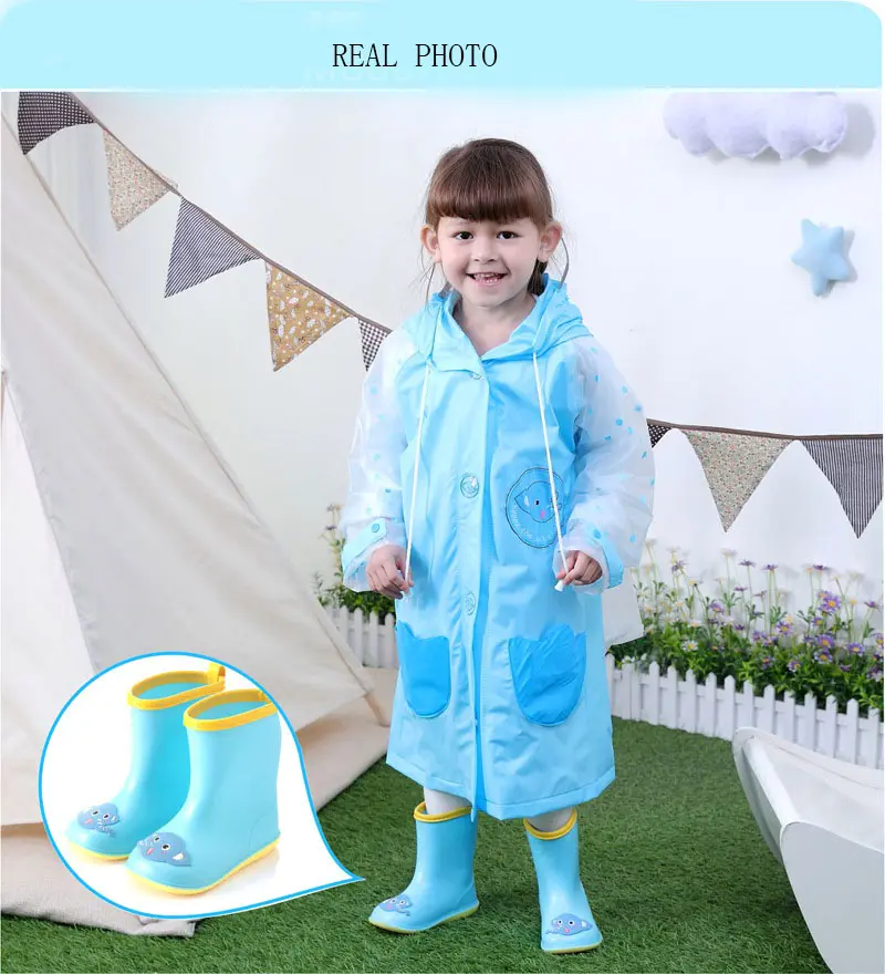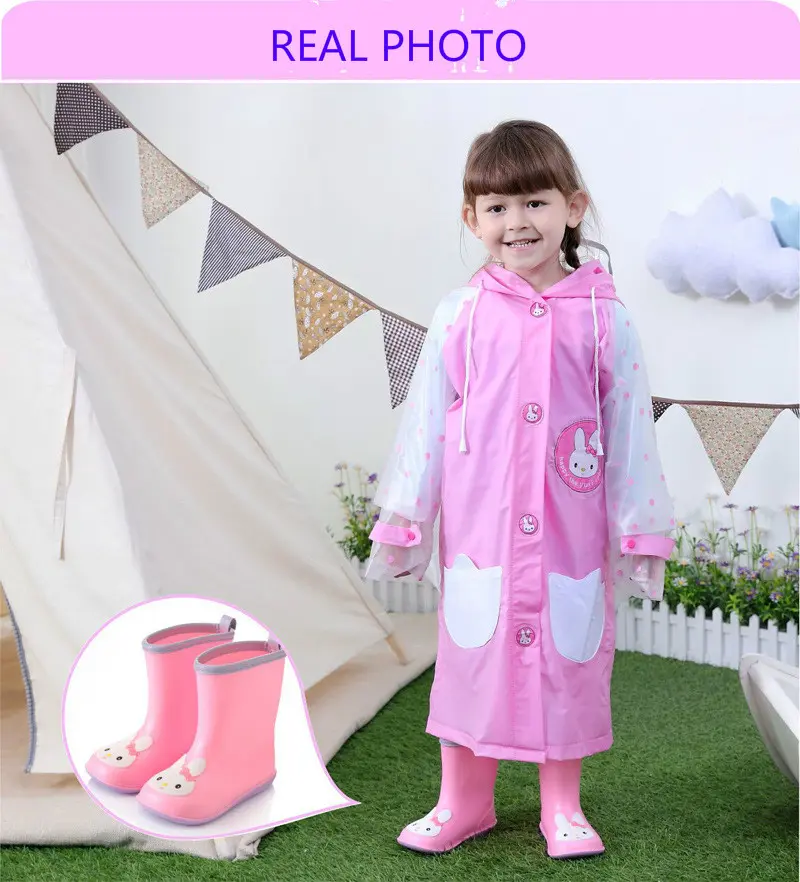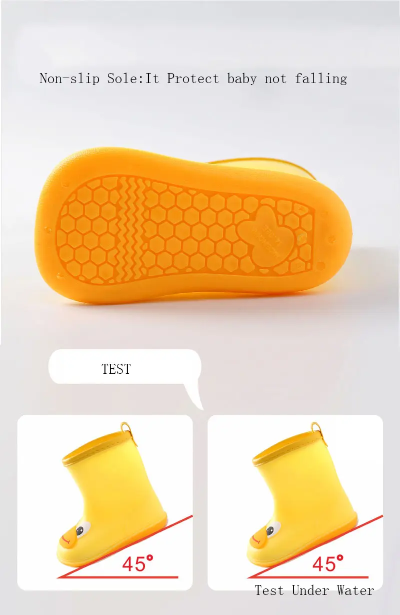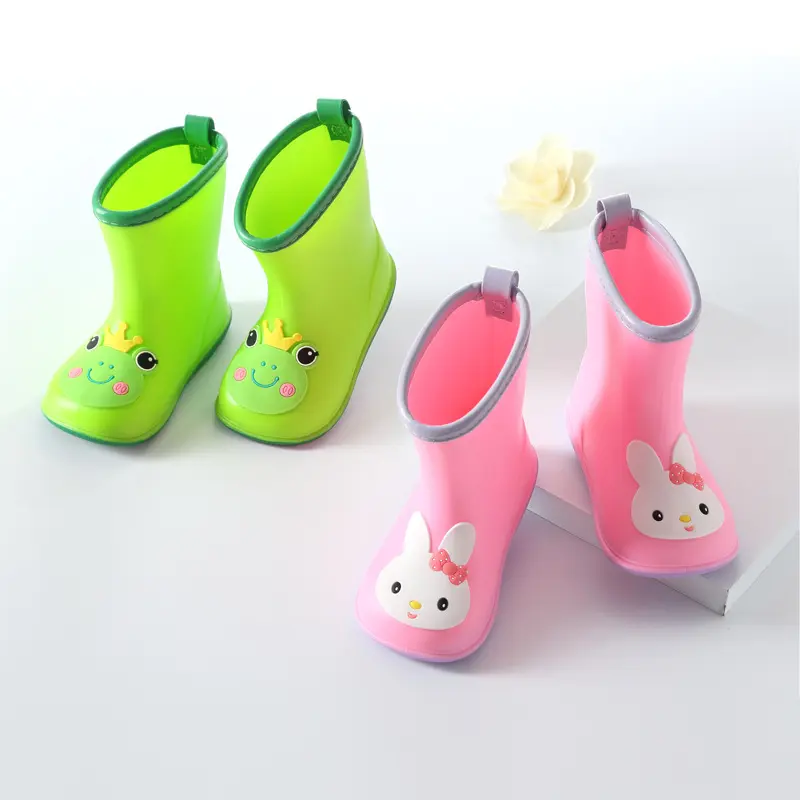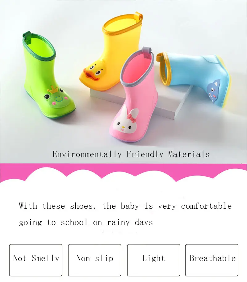 Nice Wide Round Toe Children Rainboots Baby PVC Rubber Waterproof Kids Water Shoes Lovely Cartoon Rain Boots Platform D03223