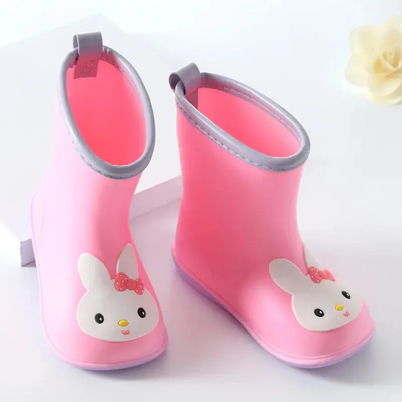 Nice Wide Round Toe Children Rainboots Baby PVC Rubber Waterproof Kids Water Shoes Lovely Cartoon Rain Boots Platform D03223