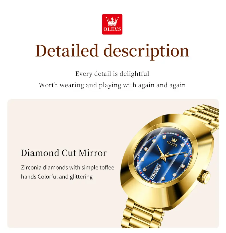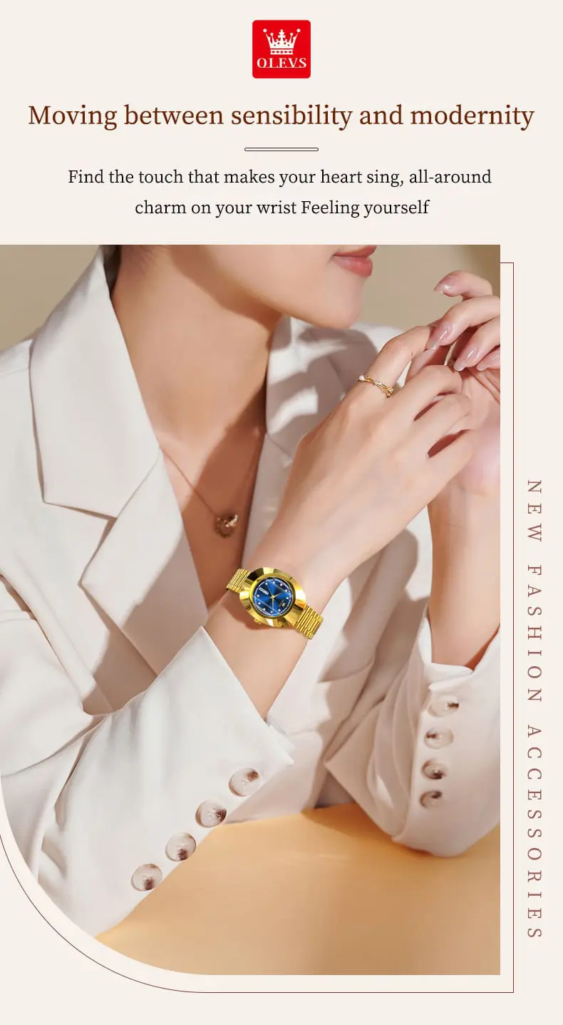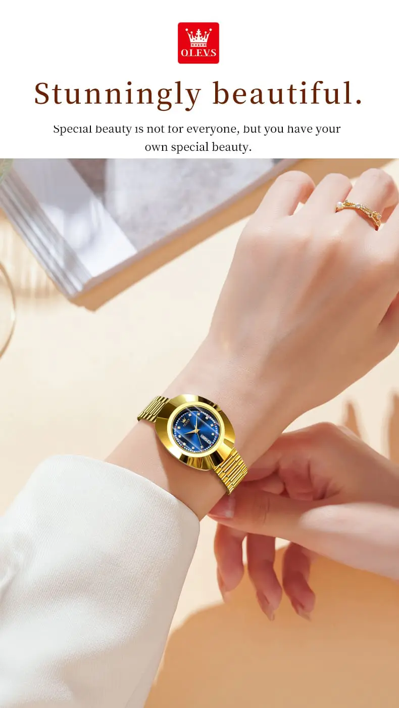 OLEVS 7017 Dual Calendar Quartz Watch For Women Luxury Diamond Scale Ladies Wristwatch Original Waterproof Woman Dress Watches