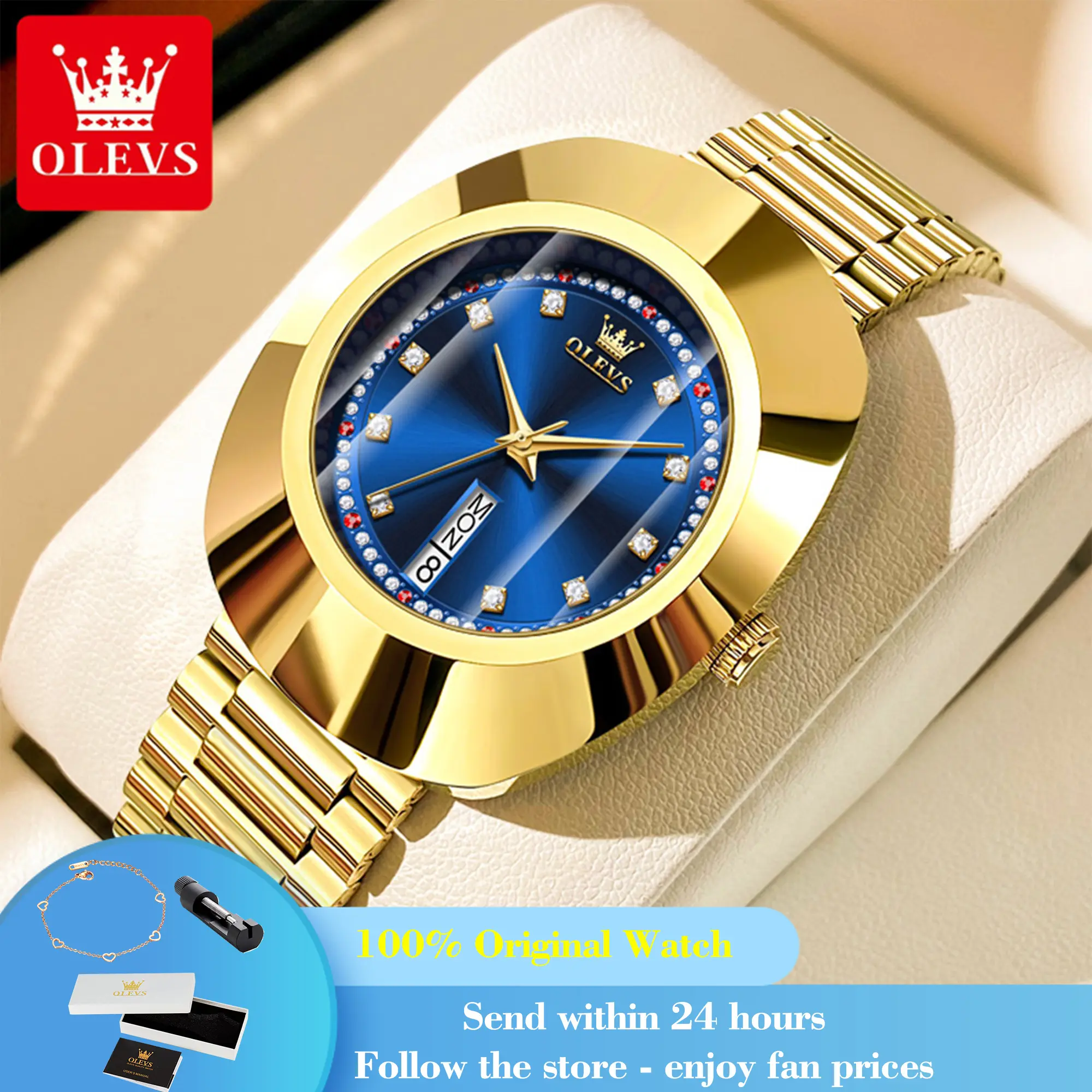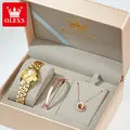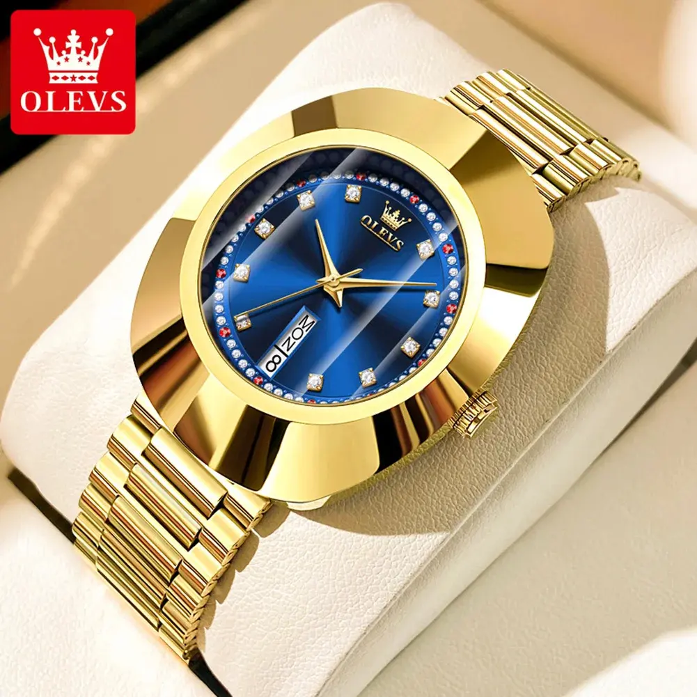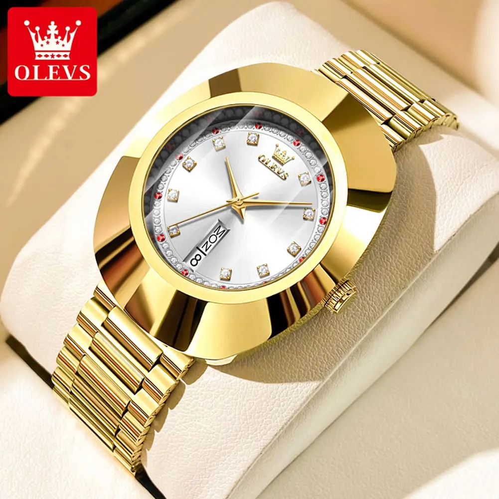 OLEVS 7017 Dual Calendar Quartz Watch For Women Luxury Diamond Scale Ladies Wristwatch Original Waterproof Woman Dress Watches