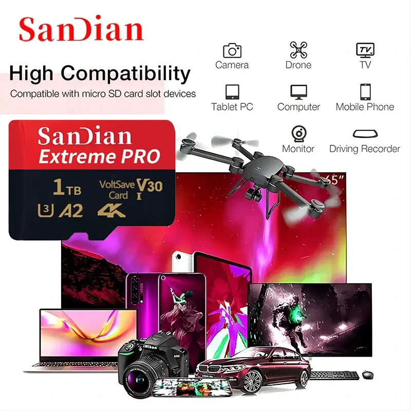 1TB Memory Card Micro TF/SD Card Mini Class 256GB 128GB High Speed Cards 2TB Flash Memory TF Card C10 for Phone/PC/CAMERA