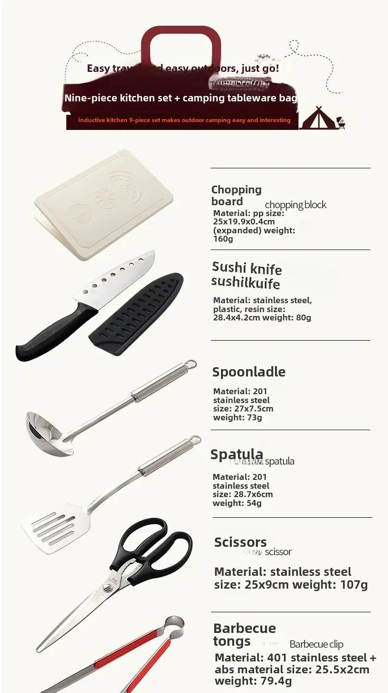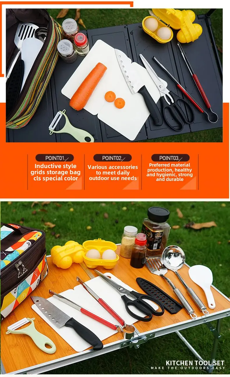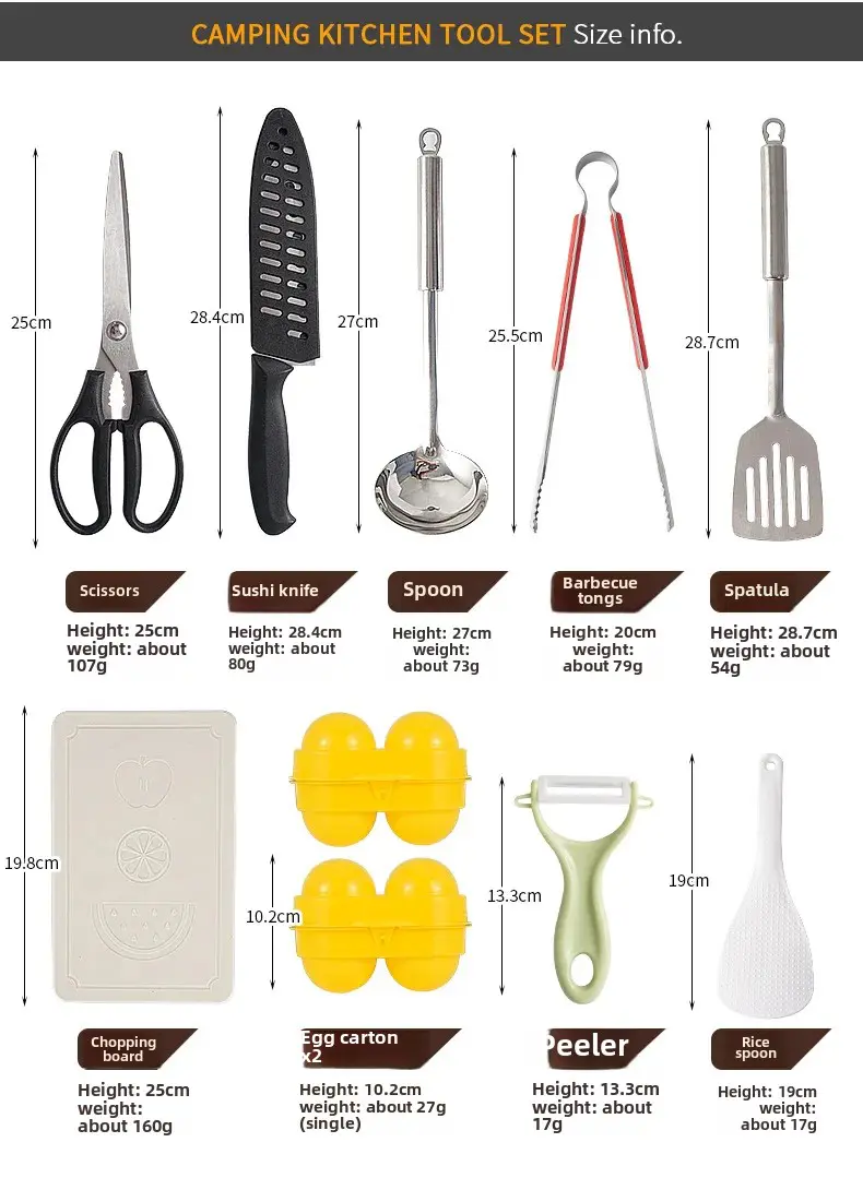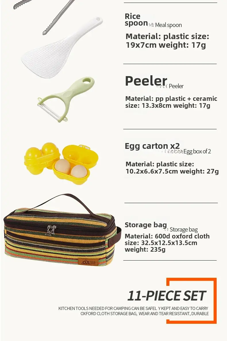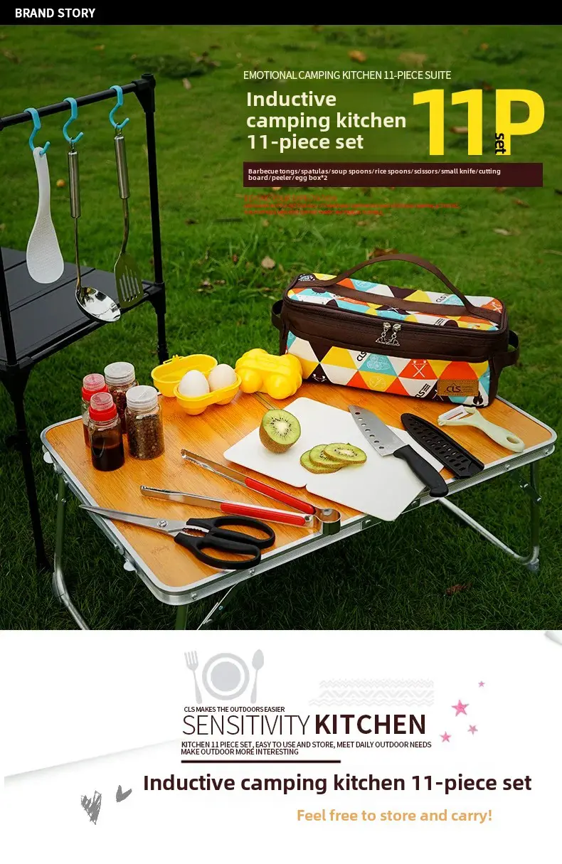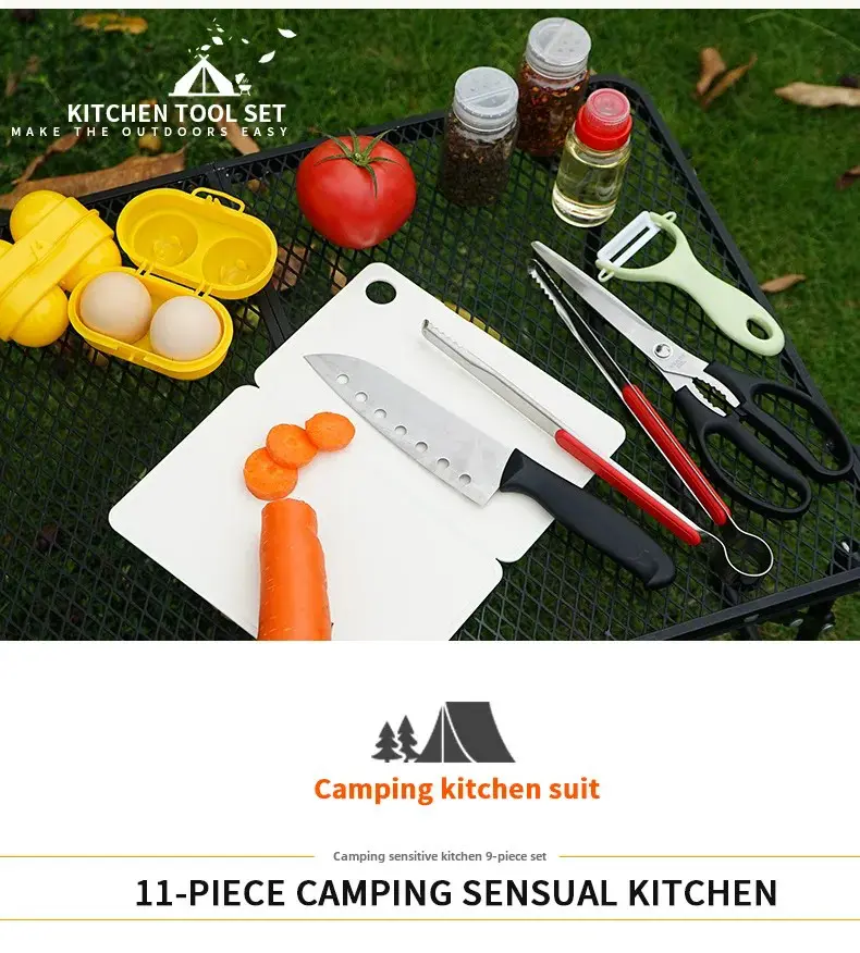 Outdoor Camping Cooking Tools Mini 11-Piece Set Portable Barbecue Picnic Kitchen Gadgets Dormitory Essentials Camping Gear