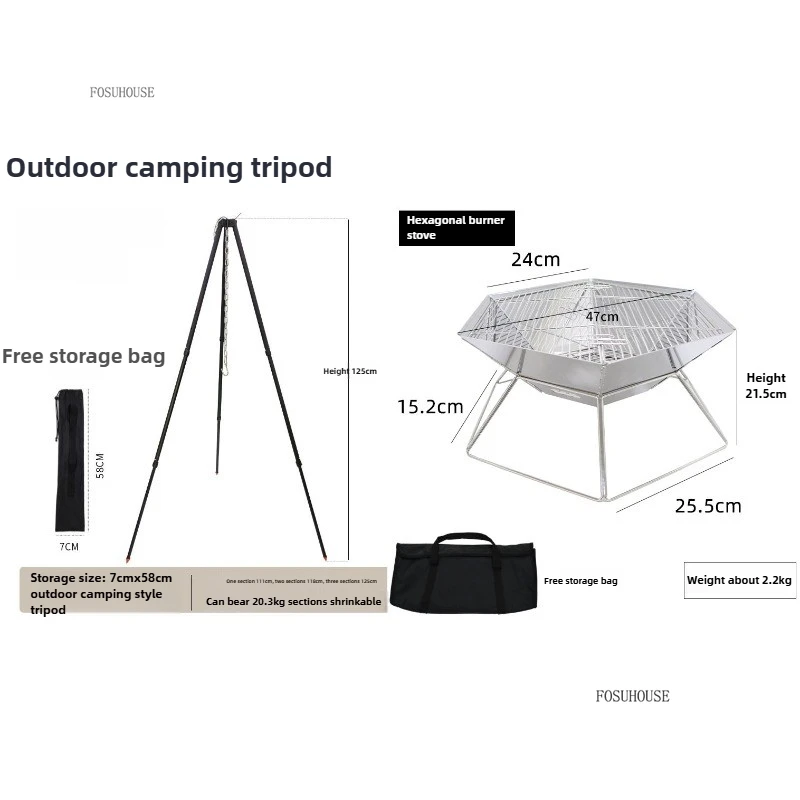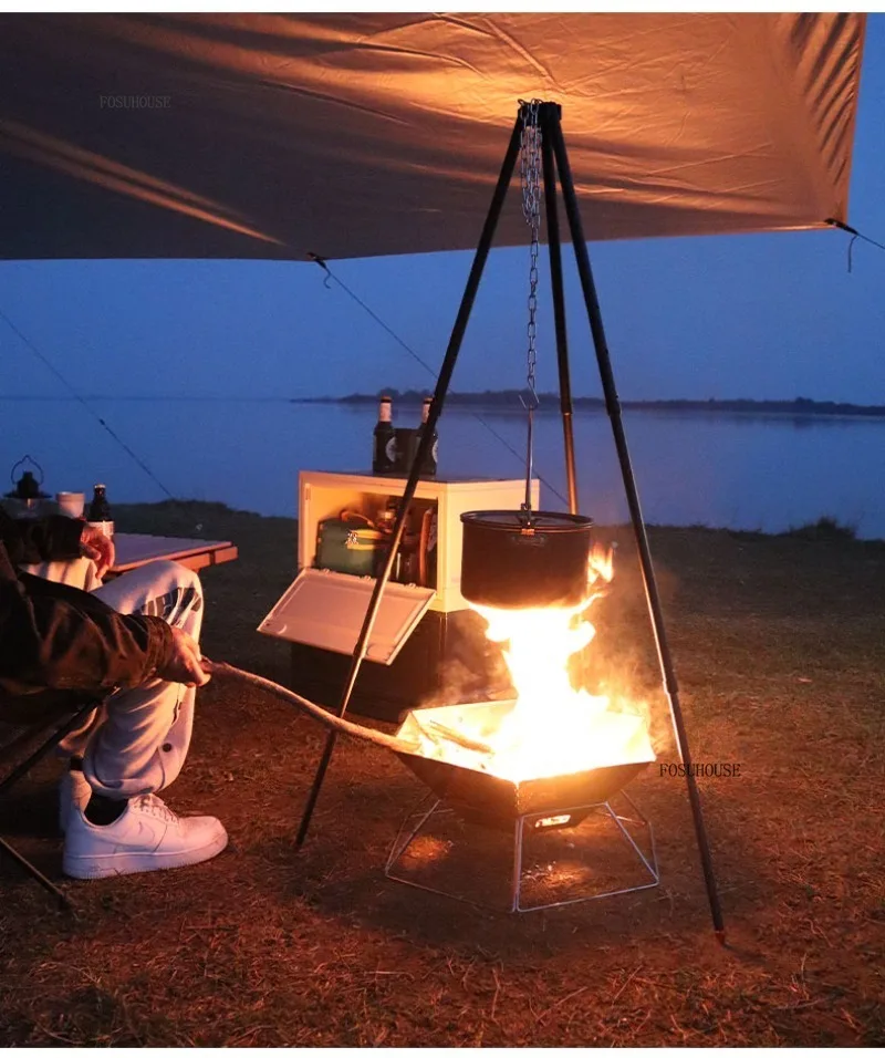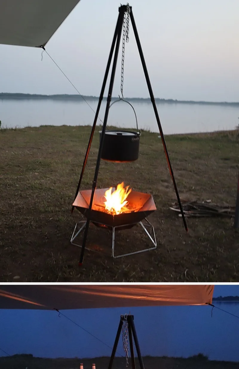 Outdoor Camping Fire Pits Tripod Campfire Rack Portable Burning Fire Table Grill Stove Outdoor Camping Cooker Grill Stand B