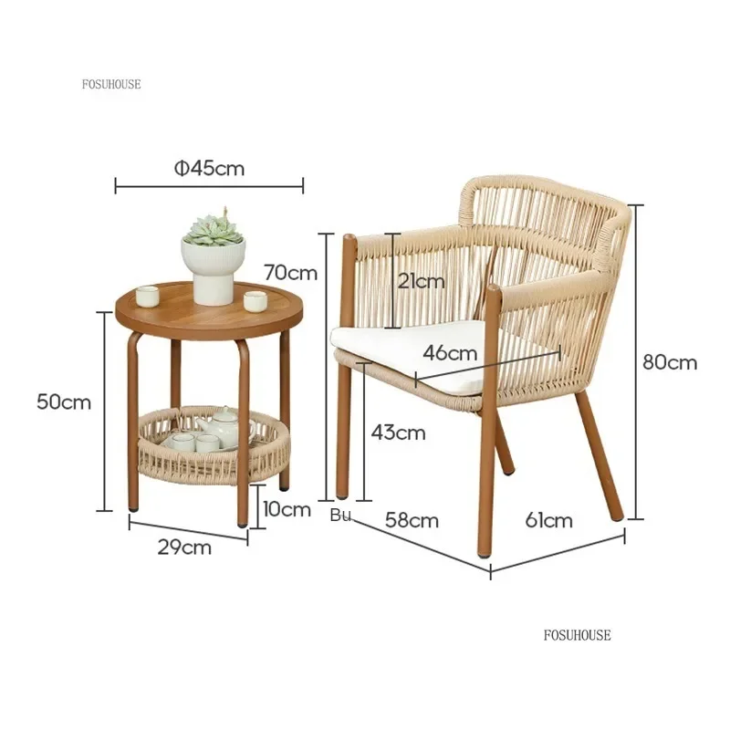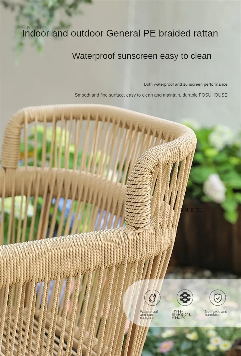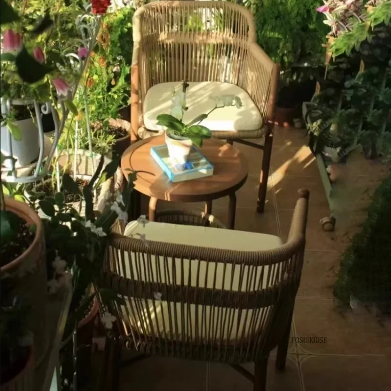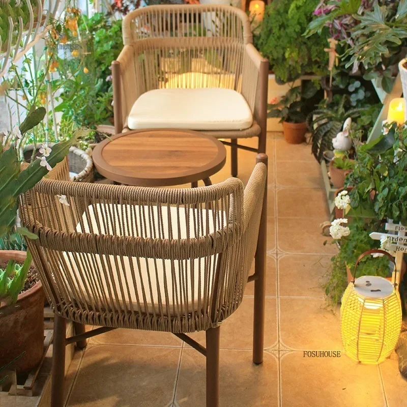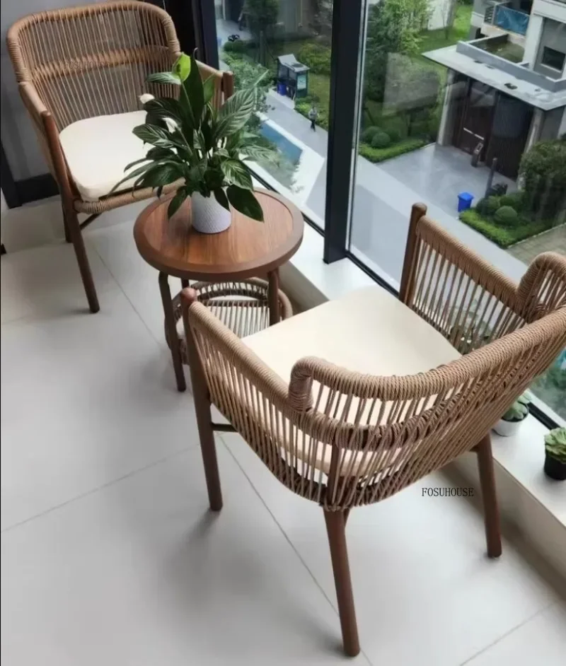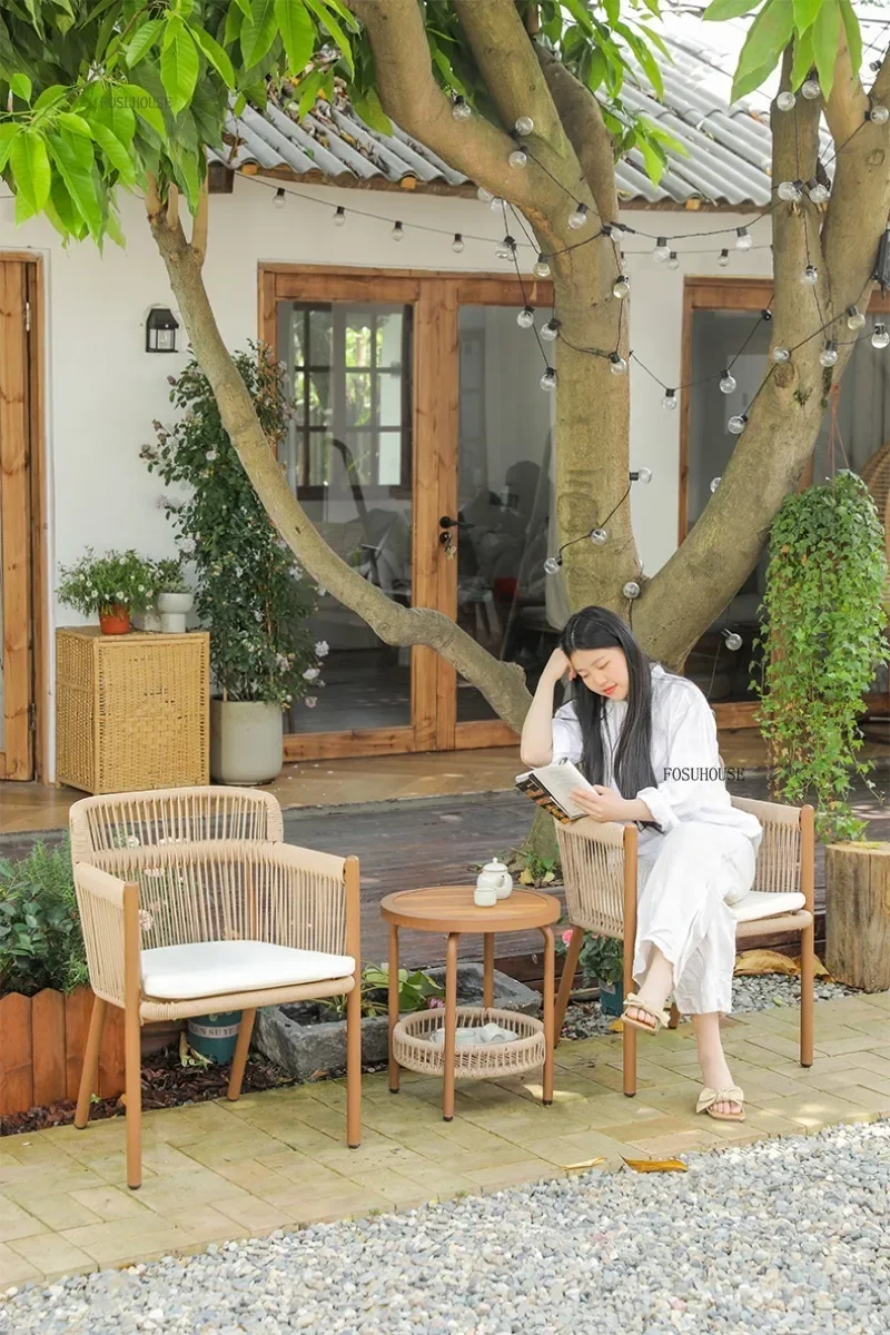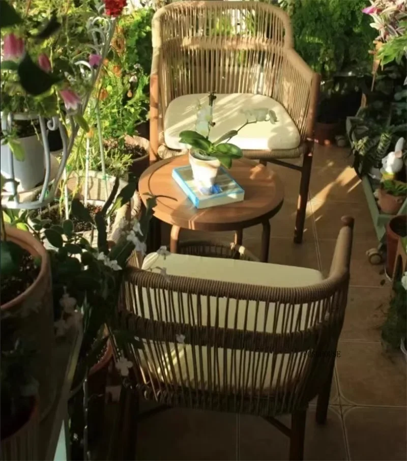 Outdoor Rope Rattan Sun Protection Table and Chair Set Modern Courtyard Garden Furniture Sets Homestay Balcony Three-piece Set