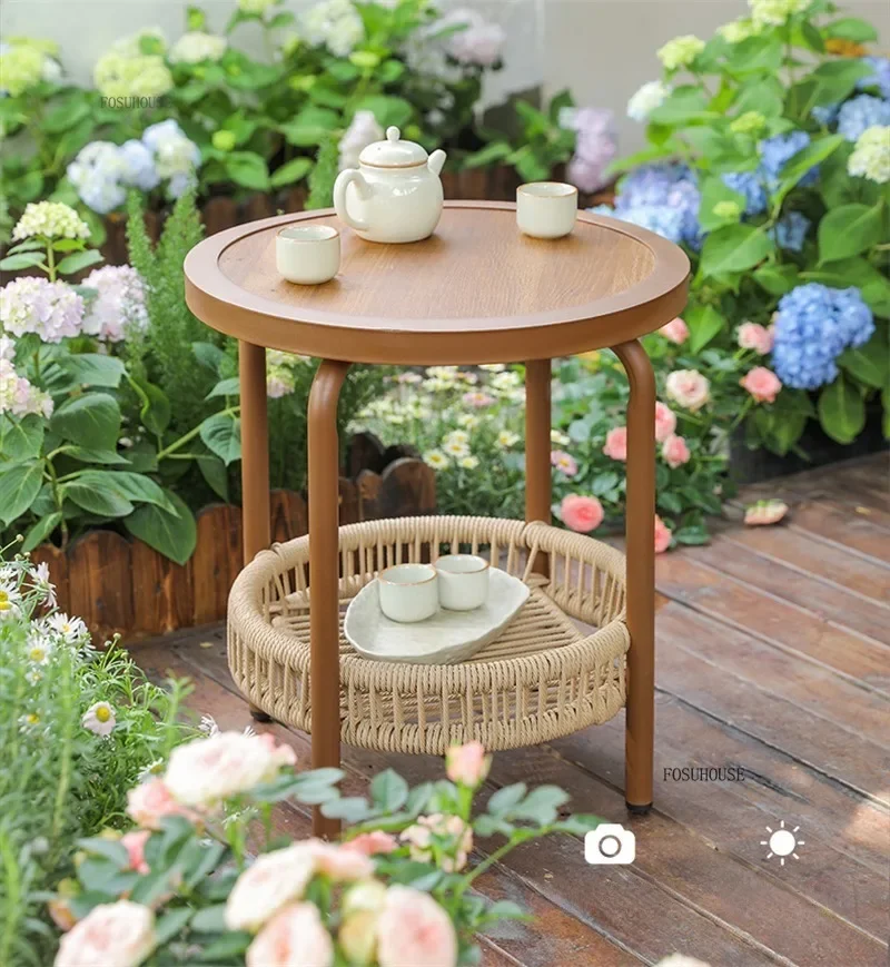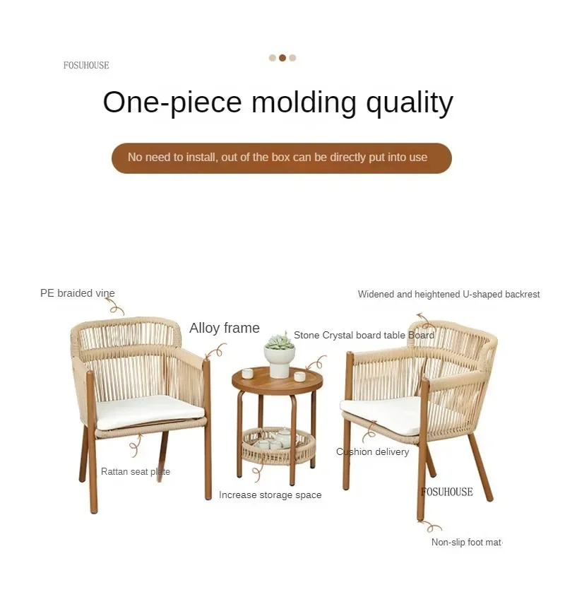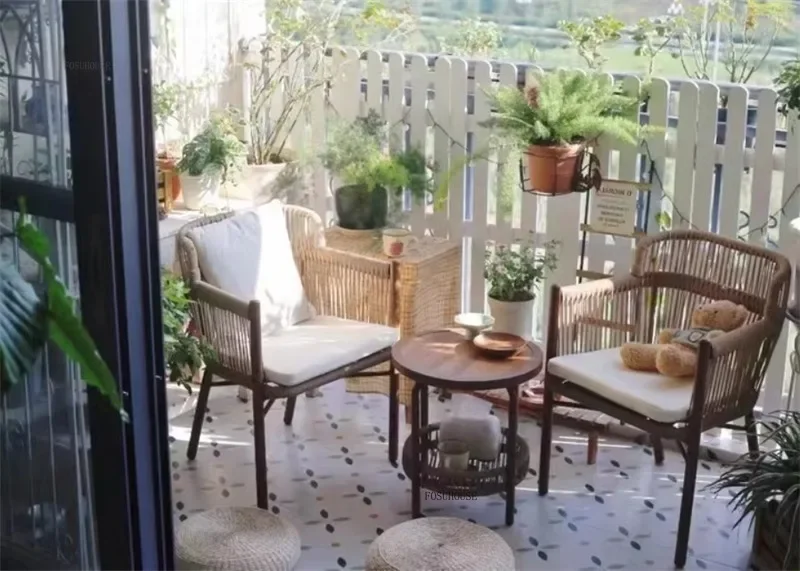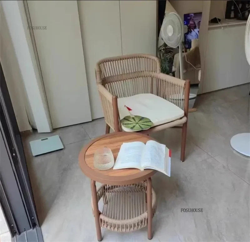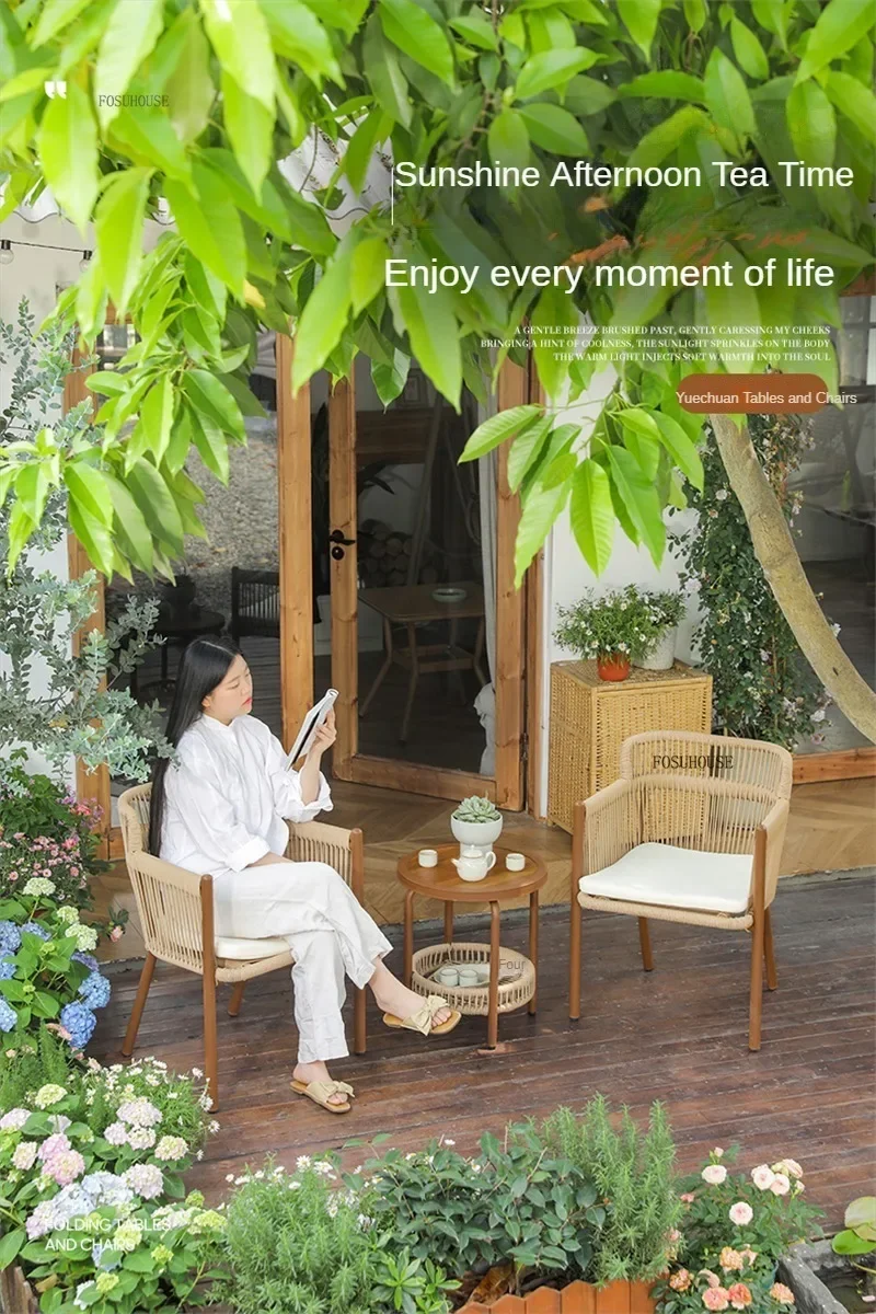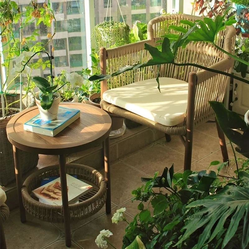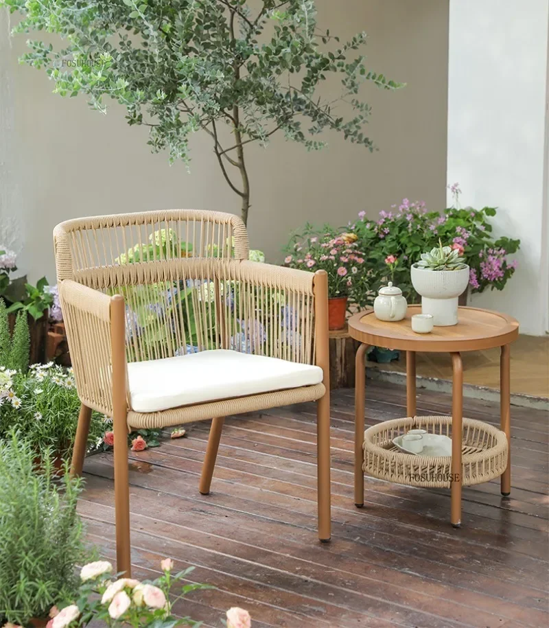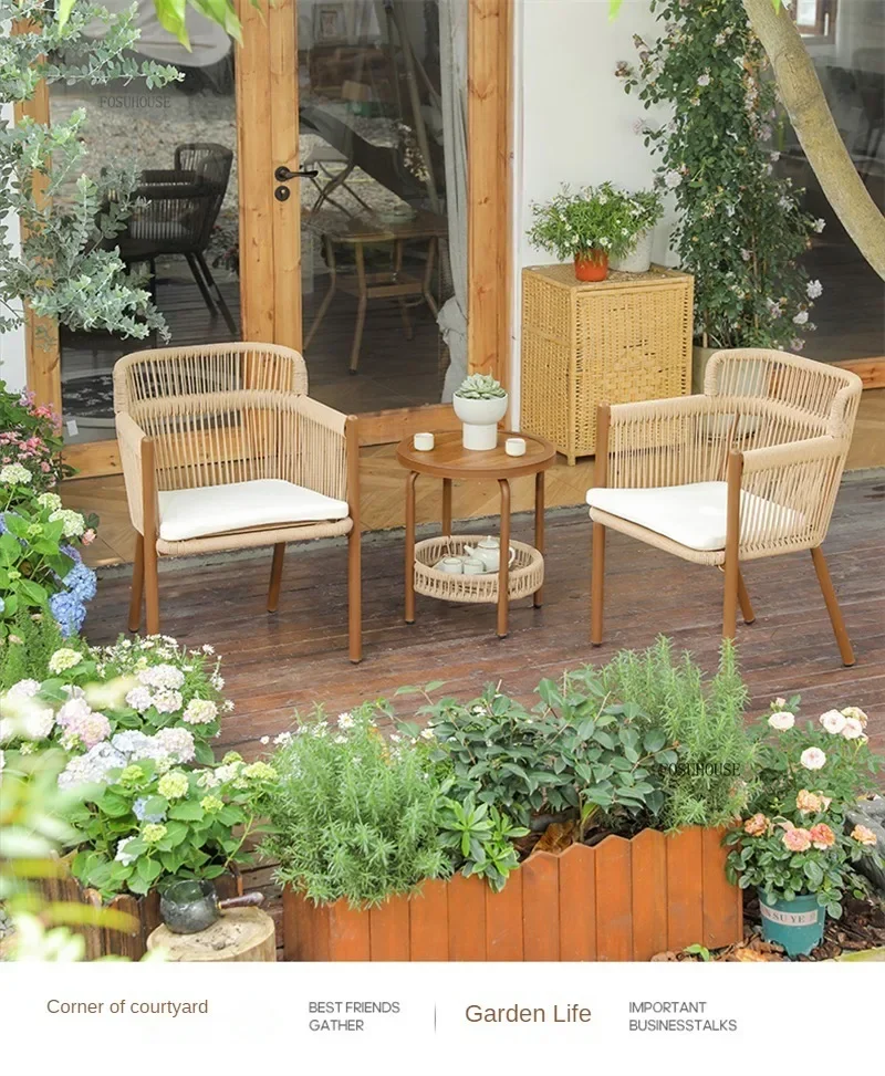 Outdoor Rope Rattan Sun Protection Table and Chair Set Modern Courtyard Garden Furniture Sets Homestay Balcony Three-piece Set
