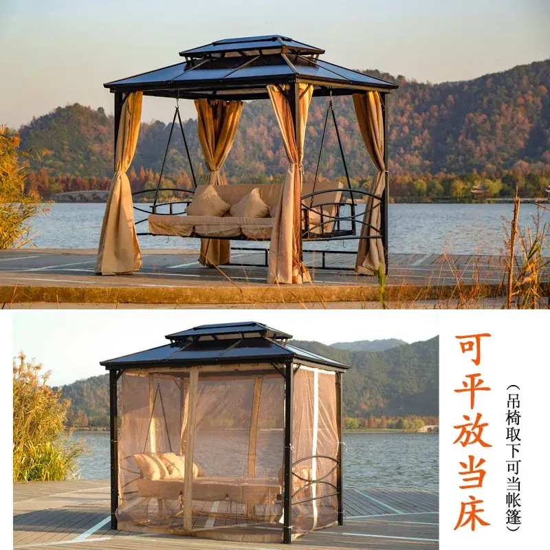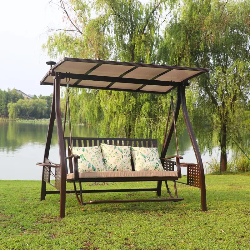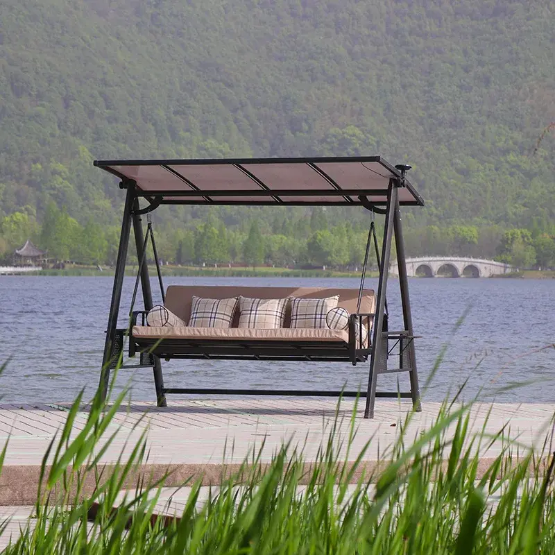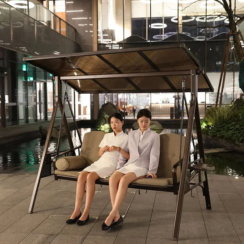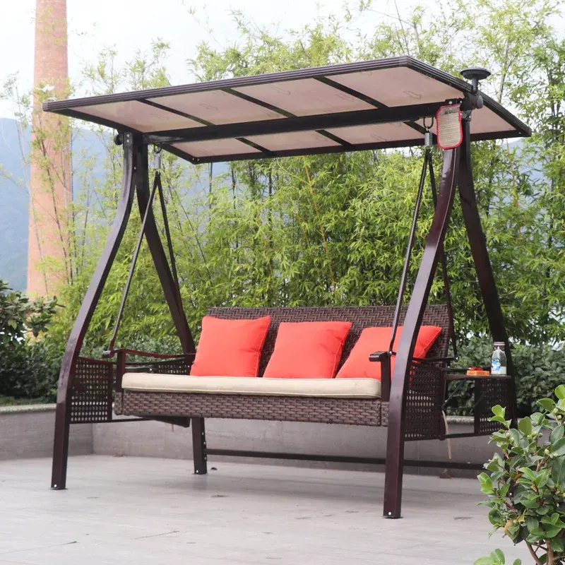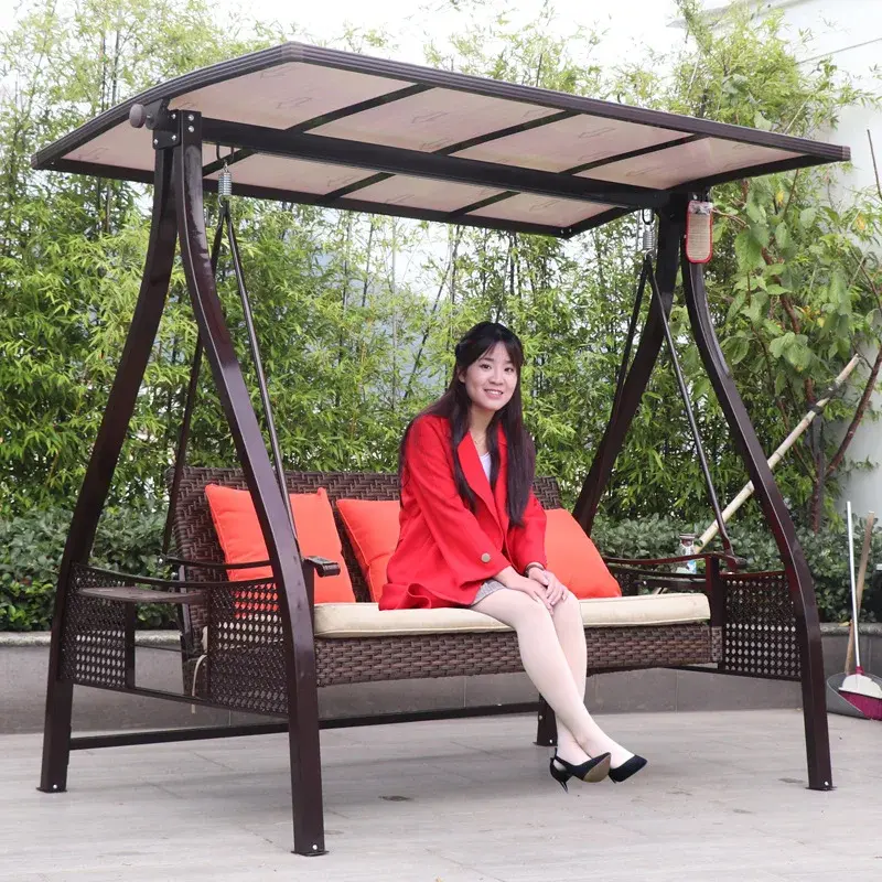 Outdoor Swing Hanging Chair Courtyard Garden Swing Chair Outdoor Terrace Rattan Swing Rocking Chair Three-person Hammock Hammock