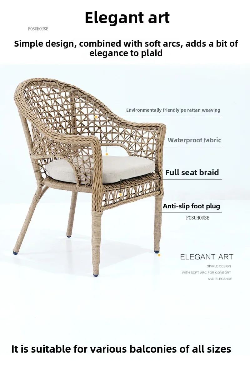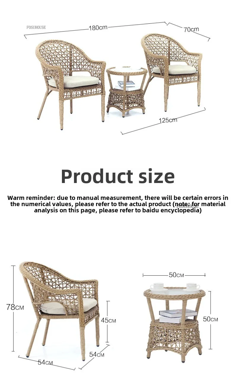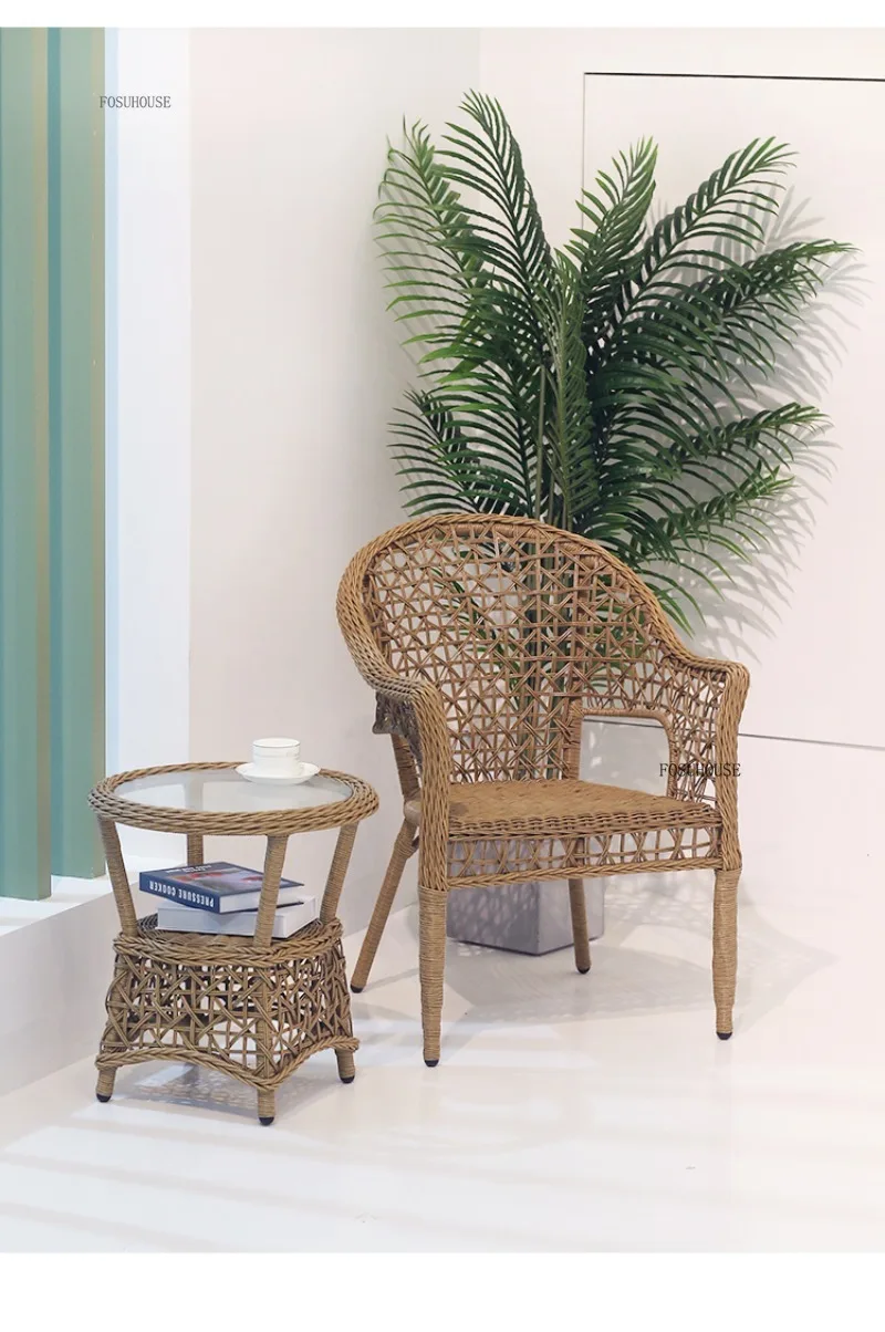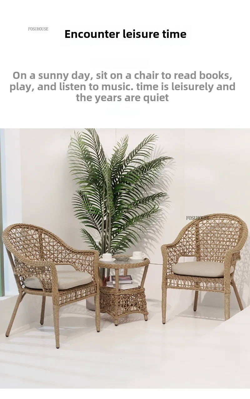 Outdoor Table and Chair Sets Leisure Outdoor Courtyard Terrace Table and Chair Balcony Rattan Chair Tea Table Three-piece Set