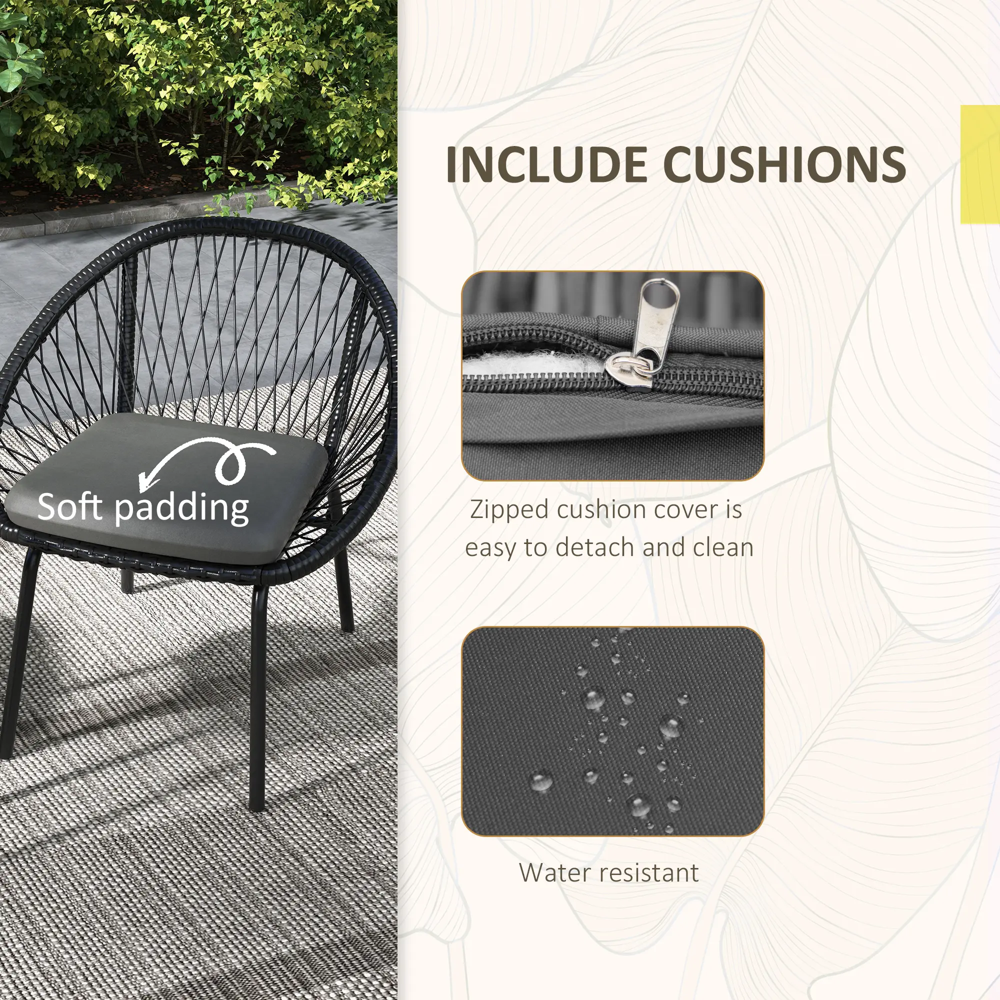 Outsunny 3 Piece Garden Furniture Set, Bistro Set w/ 2 Chairs & 1 Coffee Table