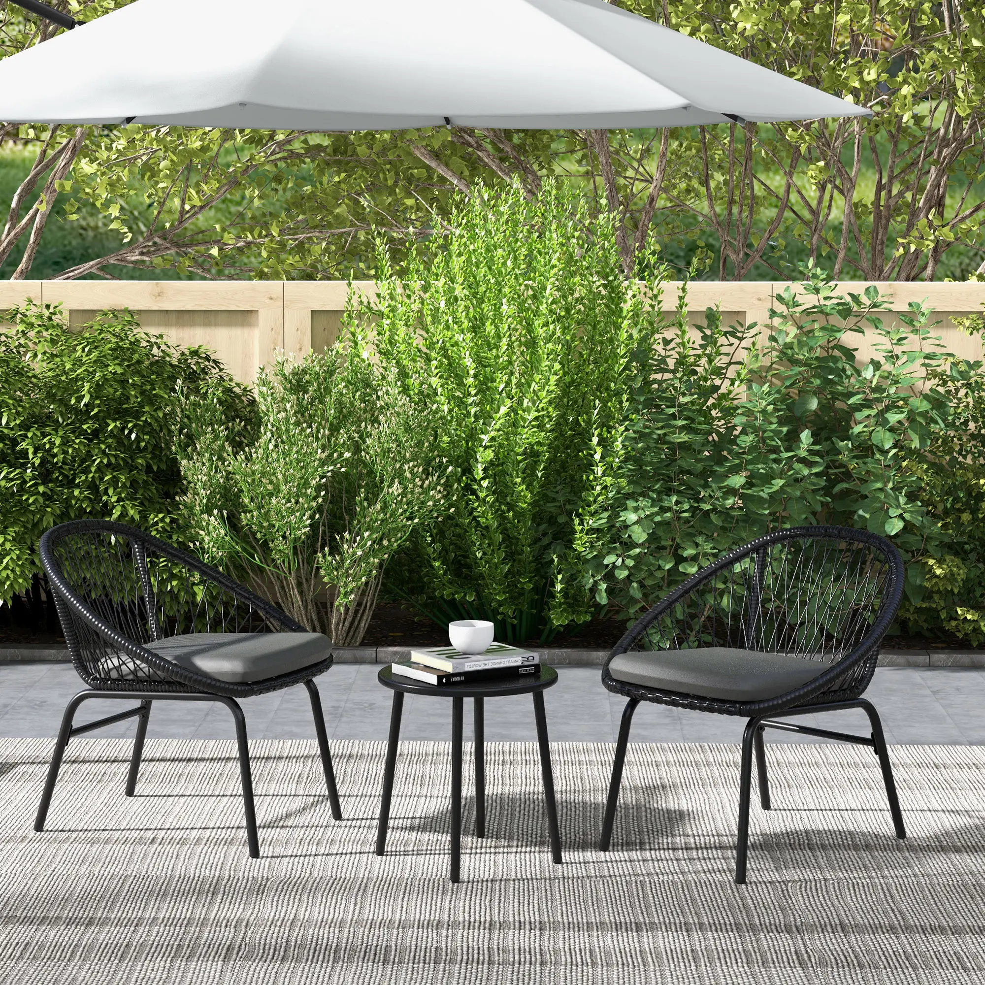 Outsunny 3 Piece Garden Furniture Set, Bistro Set w/ 2 Chairs & 1 Coffee Table
