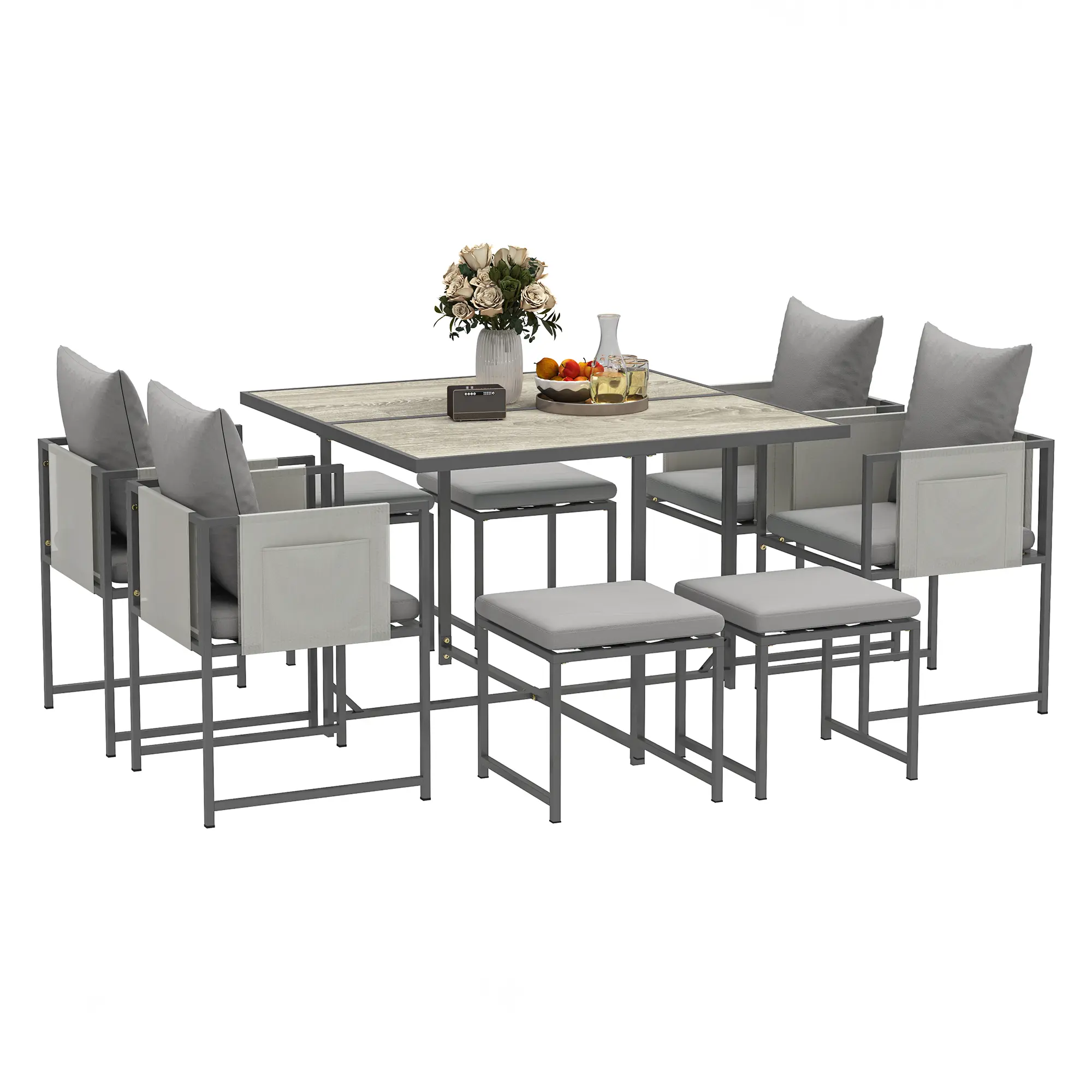 Outsunny 9 Piece Garden Dining Set, Cube Outdoor Garden Furniture Set with Cushions, 8 Seater Garden Table and Chairs