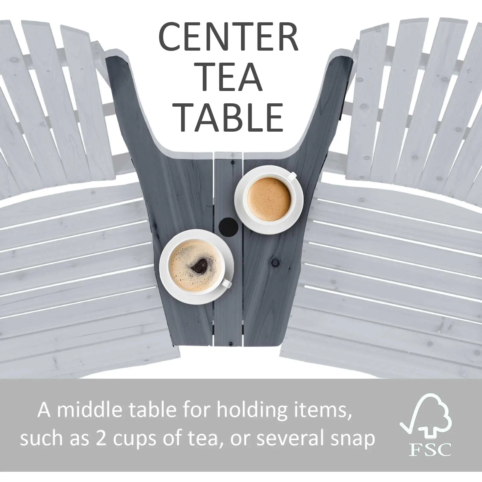Outsunny Wooden Outdoor Double Adirondack Chairs Loveseat w/ Centre Table and Umbrella Hole, Garden Patio Furniture, Dark Grey