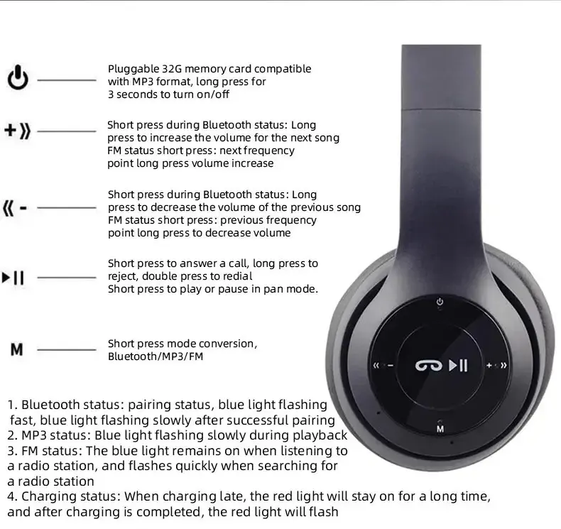 P47 Wireless bluetooth headphone With Mic Noise Cancelling Headsets Stereo Sound Earphones Sports Gaming Headphones Supports PC