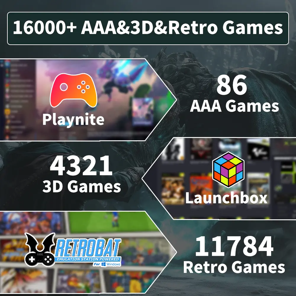 Playnite System with 86 AAA Games, Launchbox System with 4321 3D Games and Retrobat System with 11784 Retro Games