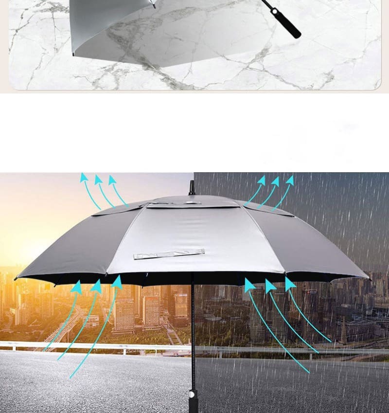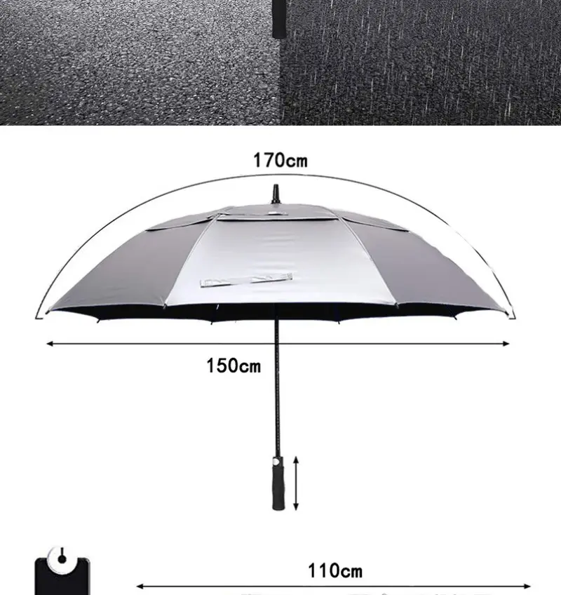 Specifications: Material: High-density nano water repellent coating, Titanium Silver Glue Fabric Size: 40-Inch (180cm) Long Handle Umbrella Design: Double-Layer Sun Protection, Windproof, Leak-Proof Usage: Outdoor Sun Protection, Golf Umbrella Performance: 99% UVA Barrier Rate, Quick-Drying, Easy to Care Accessories: None Features: **Enhanced Sun Protection** The 40-Inch 180cm Large Long Handle Umbrella is a quintessential accessory for those who value outdoor comfort and protection. With its double-layer sun protection, this golf umbrella offers an unparalleled shield against the sun's harmful UV rays. The high-density nano water repellent coating ensures that water beads up and rolls off, keeping you dry even in the heaviest downpours. The titanium silver glue fabric is not only aesthetically pleasing but also effectively blocks 99% of UVA rays, safeguarding your skin from aging and sunburn. **Durable and Versatile Design** Crafted with a focus on durability, this umbrella's double-layer design is not only windproof but also leak-proof, ensuring that you stay dry and comfortable in any weather. The long handle provides a comfortable grip, making it easy to carry and maneuver. The sleek design of the umbrella makes it suitable for various outdoor scenarios, from golf courses to casual strolls in the park. Its lightweight yet sturdy construction makes it a reliable companion for all your outdoor adventures. **Ease of Use and Maintenance** The umbrella's quick-drying fabric makes it a breeze to clean and maintain, ensuring that it remains in top condition for an extended period. Its easy-to-care feature allows for hassle-free maintenance, making it a practical choice for busy individuals. The 100% satisfaction guarantee ensures that if you are not satisfied with the product, you can return it for a refund or replacement, demonstrating the brand's commitment to customer satisfaction. This umbrella is not just a tool for protection; it's a statement of style and functionality.