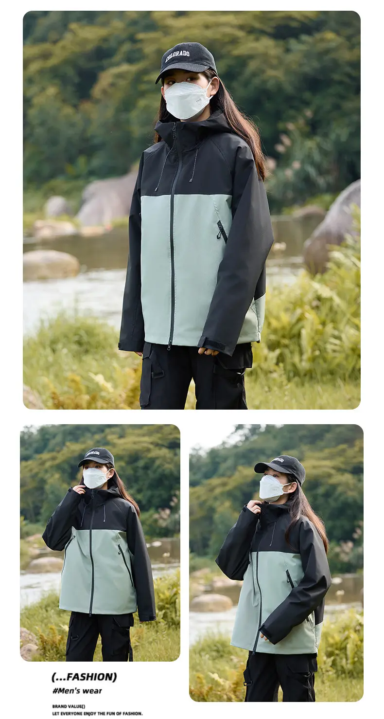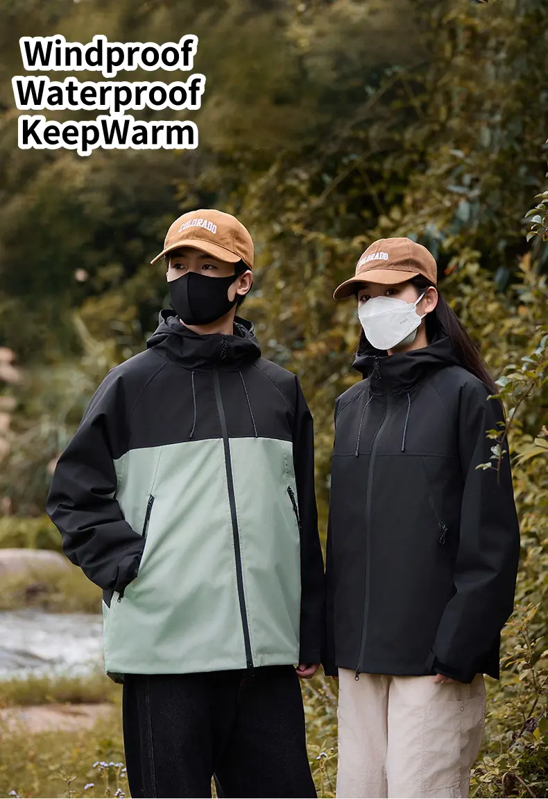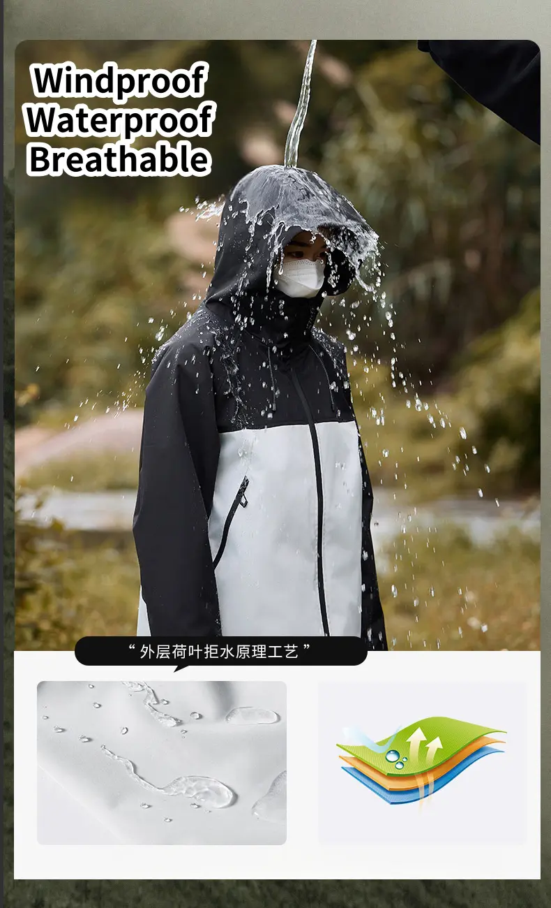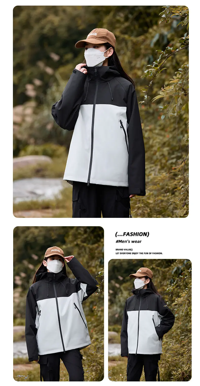 Men’s Women’s Windproof Waterproof Jacket Outdoor Rushing Jacket Detachable Hooded Zip Pocket Warm Travel Mountaineering JacketCNY 170.00/piece