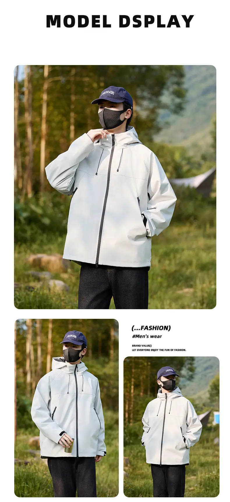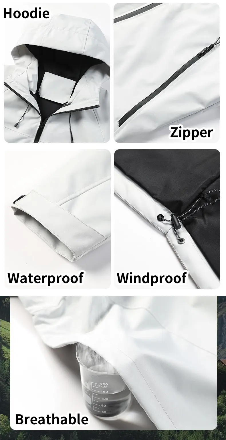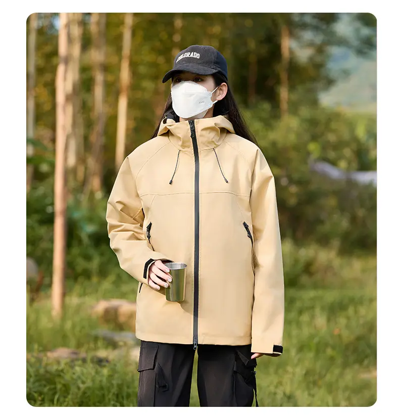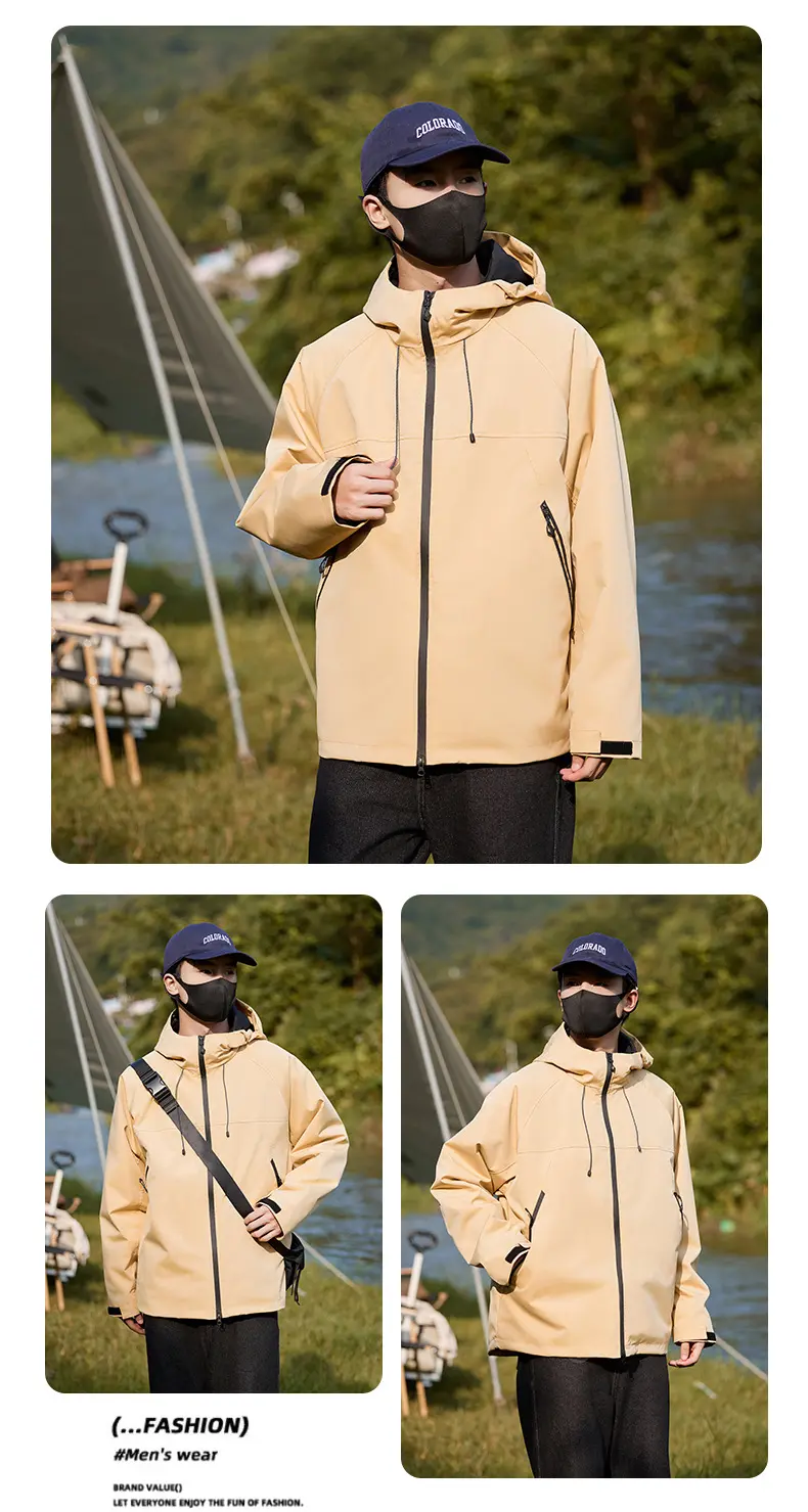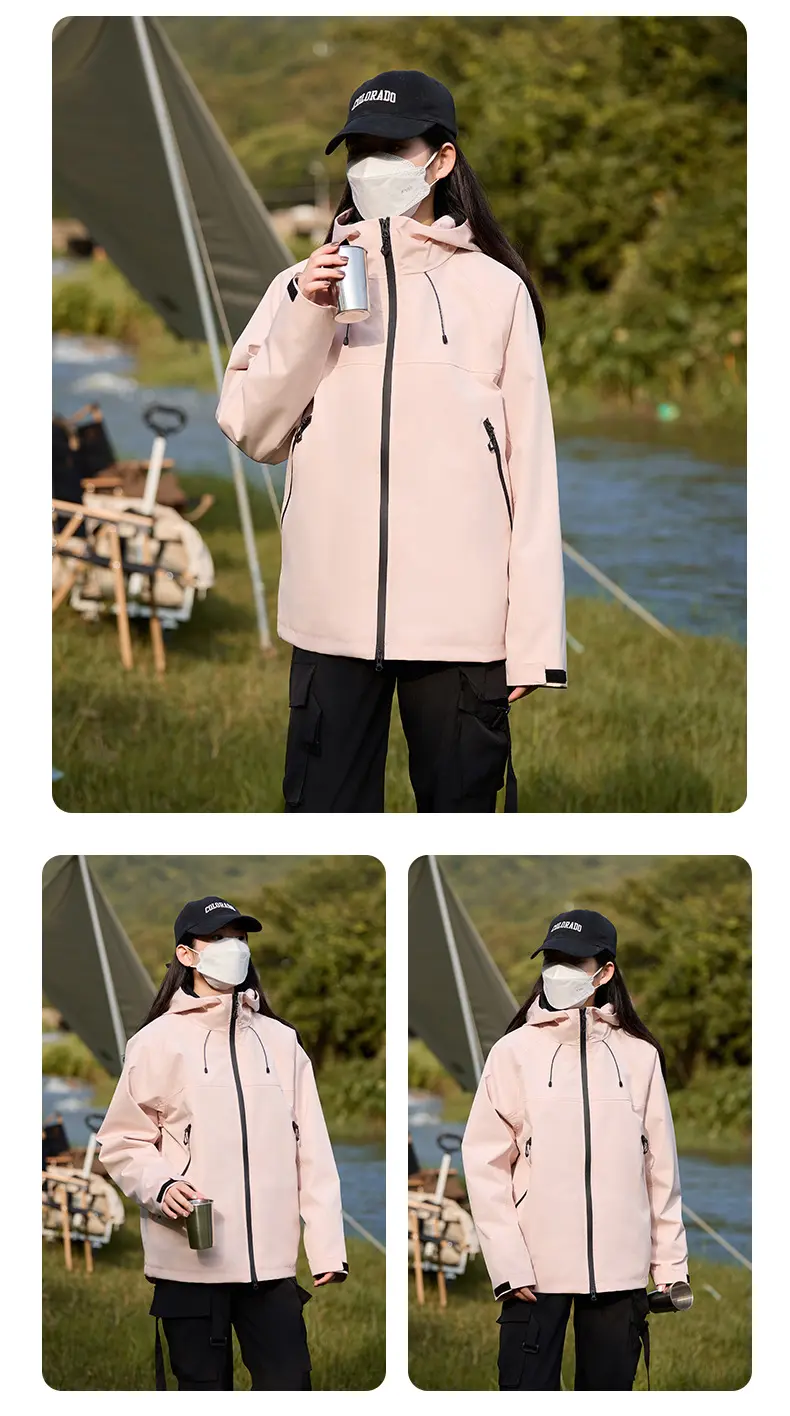 Men’s Women’s Windproof Waterproof Jacket Outdoor Rushing Jacket Detachable Hooded Zip Pocket Warm Travel Mountaineering JacketCNY 170.00/piece