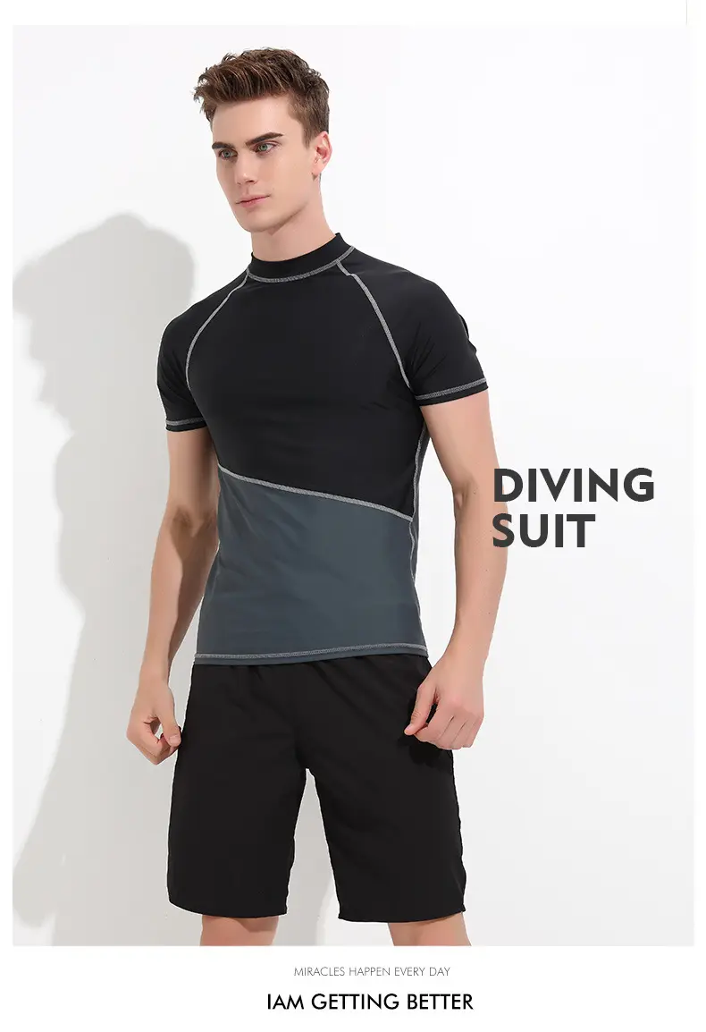 SBART Men Rashguard Short Sleeve Wetsuit Shirt Mens Quick-dry Surfing Swimwear Tops Anti-UV Windsurf Swim Rash Guard T-shirt