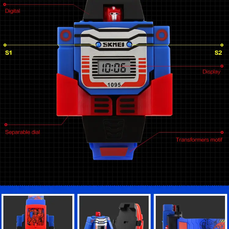 SKMEI Kids Watches LED Digital Children Cartoon Sports Watches Robot Transformation Toys Boys Wristwatches montre enfant 1095