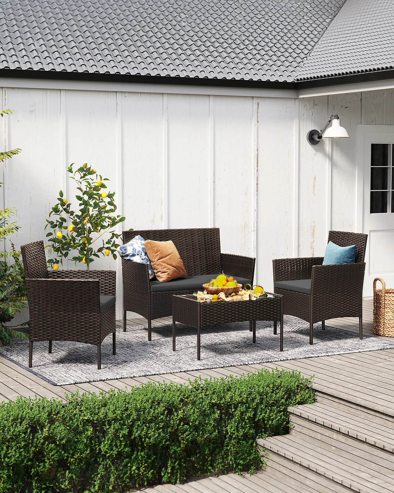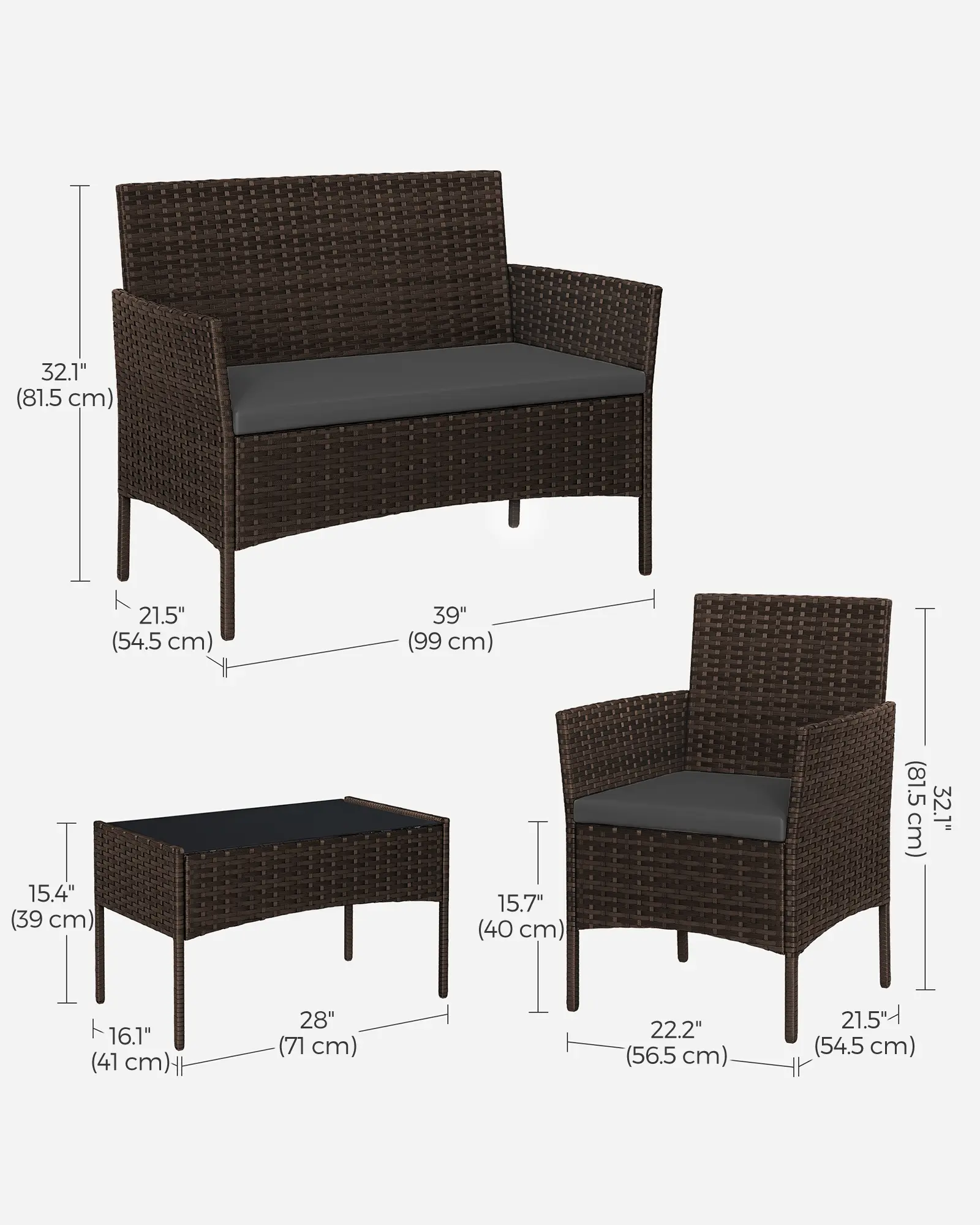 SONGMICS Garden Furniture Sets, Polyrattan Outdoor Patio Furniture, Conservatory PE Wicker Furniture