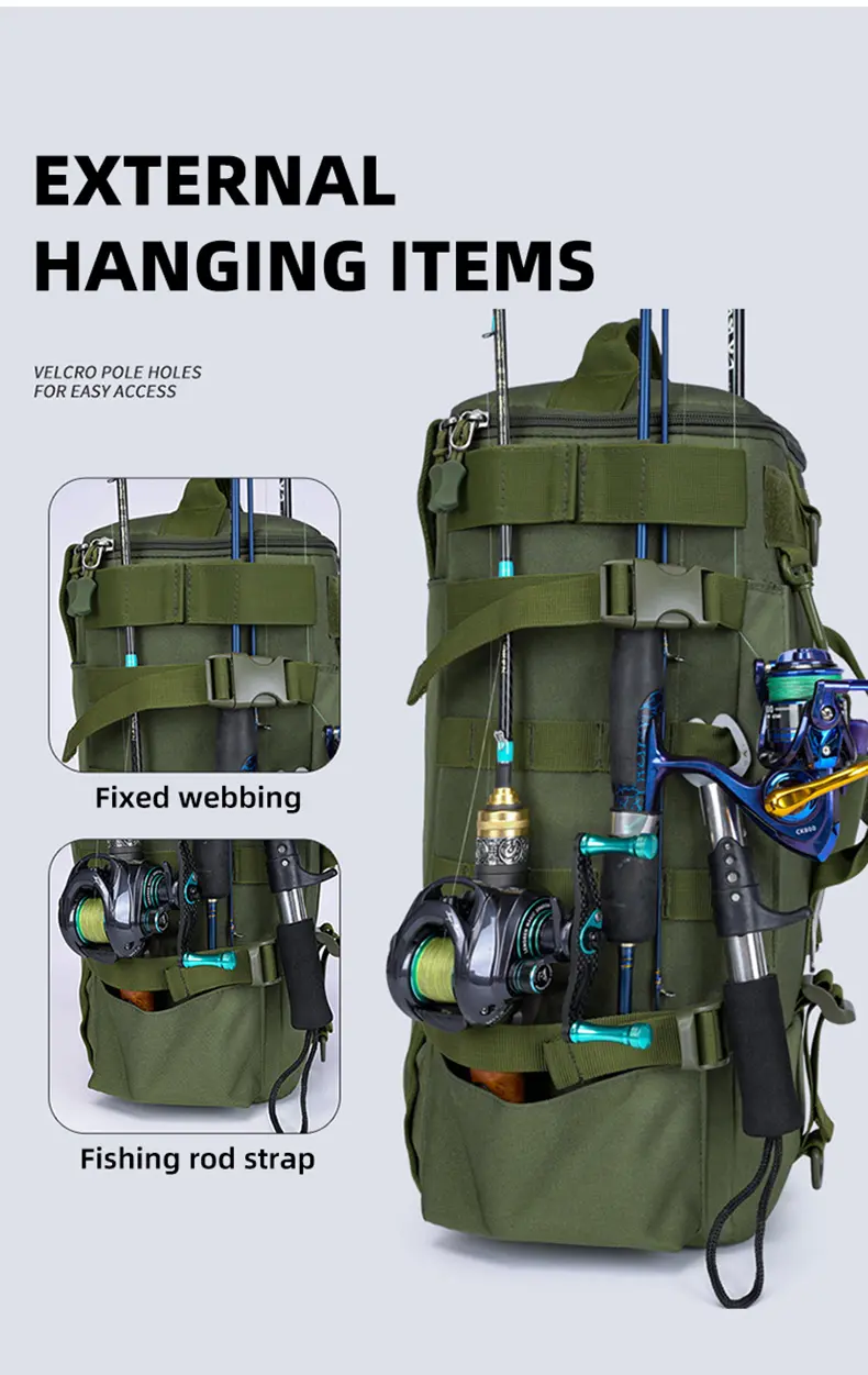 Fishing Rod Tactical Backpack Multifunctional Fishing Molle Tackle Lure Shoulder Bag Large Outdoor Travel Hiking Hunting Handbag
