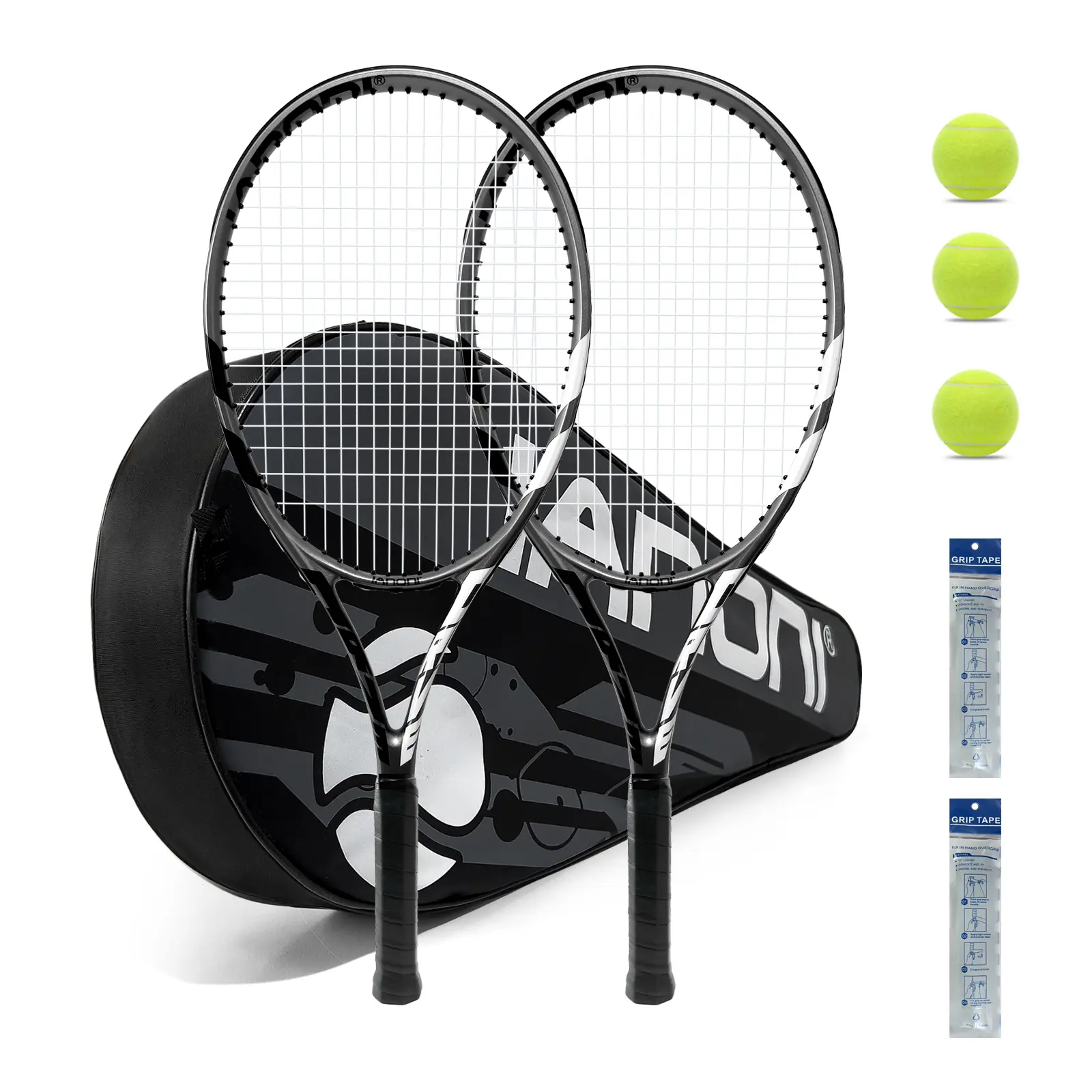 8 in 1 VALUE PACK – the Tennis Racquet Set comes with 2x 27″ tennis rackets,2x Tennis Balls, 2x Handle Grips and 1x Portable Racket Cover,which is suitable for students, lovers, the elderly, starters or intermediate players.