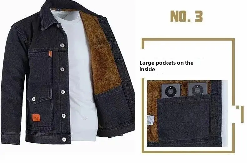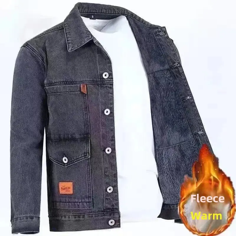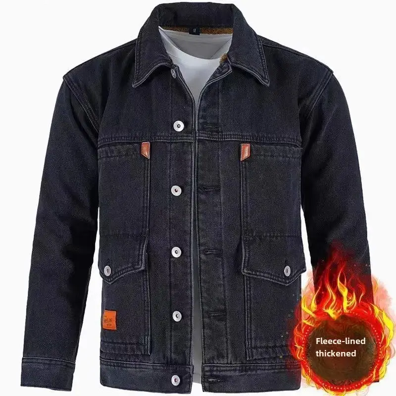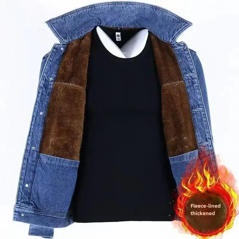 Thickened Fleece-Lined Denim Jacket For Men Warm Windproof Winter Wear Mid-Age Plus Size Loose-Fit Jacket From Factory