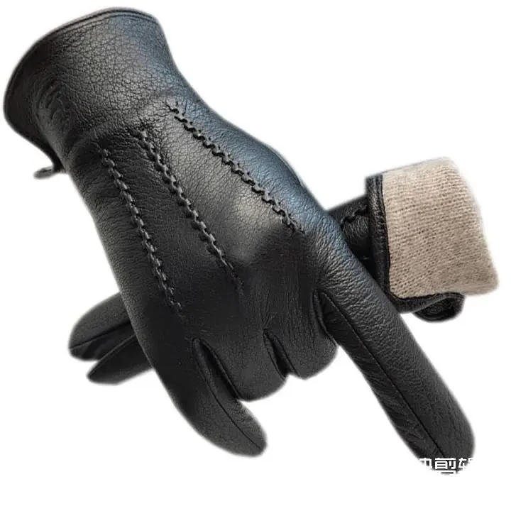 Winter Men’s Fashion Deerskin Gloves Warm Thick Lining Gift New Driving Windproof Cold Protection Medium Large Small Leather BlaUSD 22.93/piece