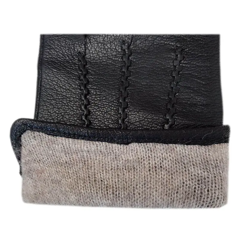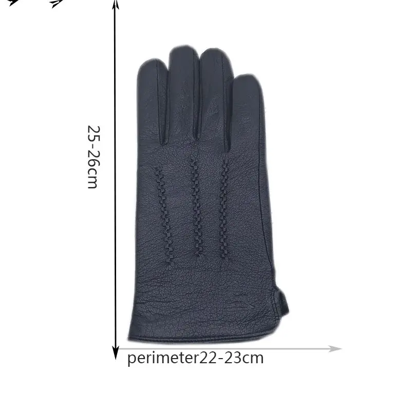 The leather surface of the deerskin men’s gloves is shiny and delicate. Strong elasticity, fingers with inner suture, good fastness, lining made of pure wool, men’s deerskin gloves, large size